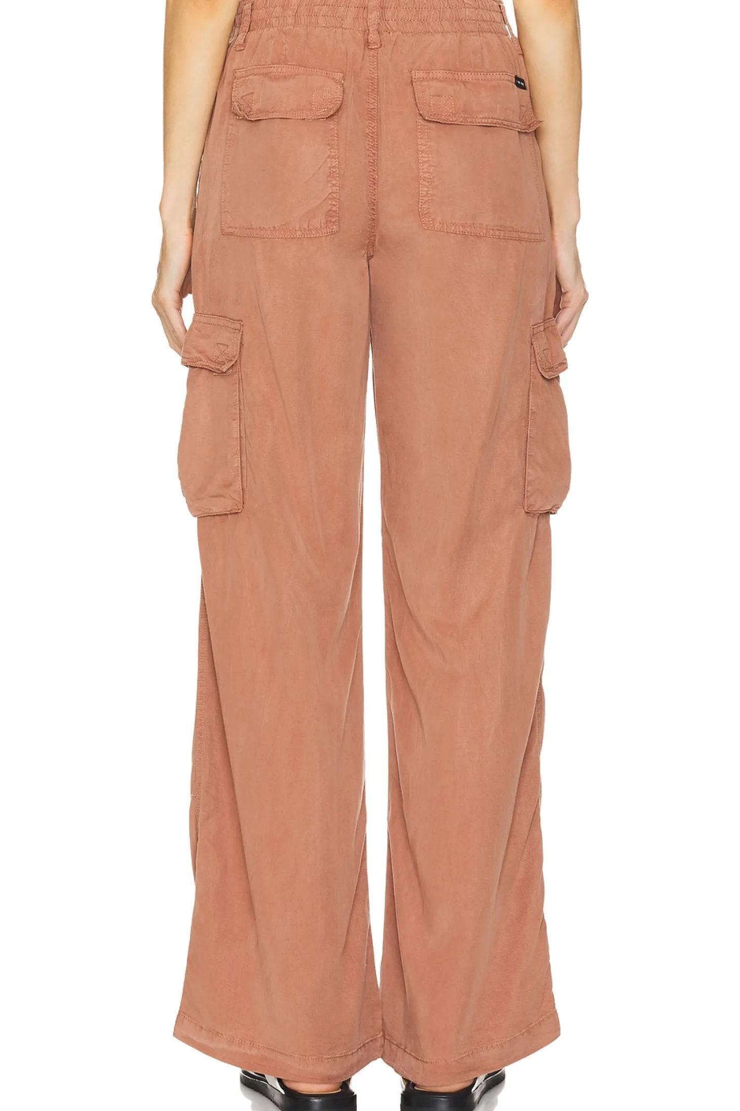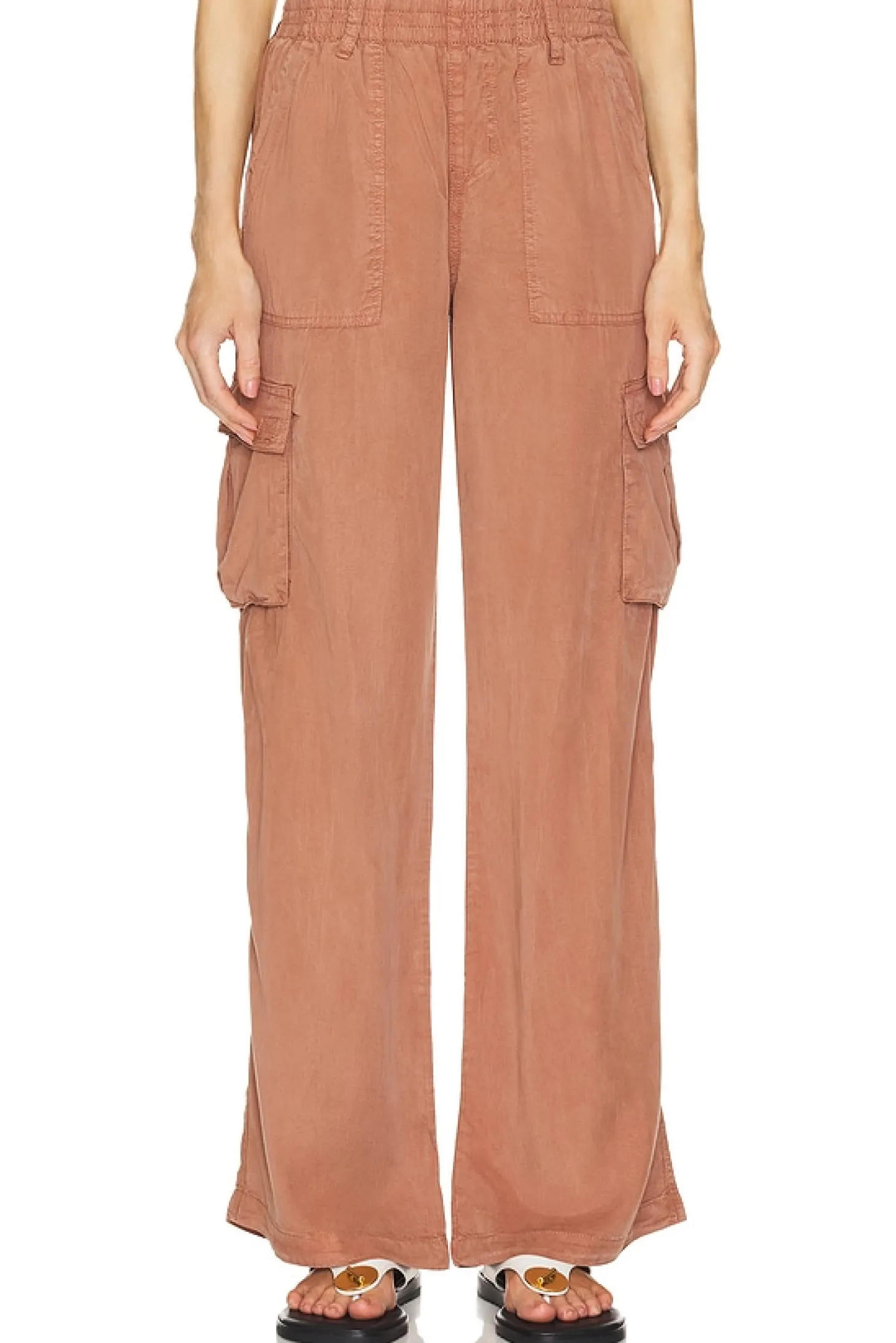 100% lyocel.Made in China.Machine wash.Pull-on styling with elastic waistband.4-pocket design with front cargo pockets.Linen fabric.20" at the knee breaks to 22" at the leg opening
