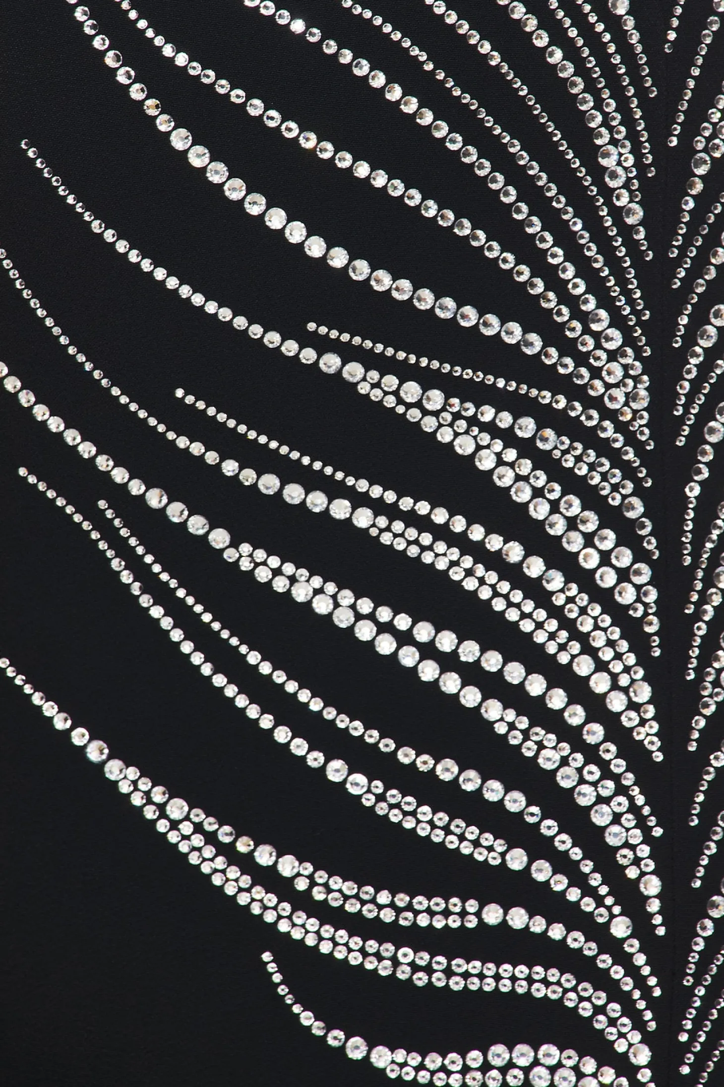 Self 1: 50% viscose 47% acetate 3% elastane Self 2: 100% glass Lining: 64% viscose 36% polyester.Made in United Kingdom.Dry clean only.Fully lined.Hidden back zipper closure.Rhinestone feather design at front.Crepe fabric.Neckline to hem measures approx 22.5" in length