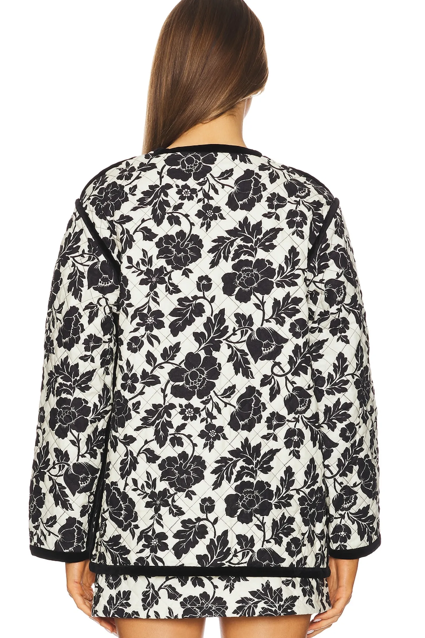 Linen textile.Imported.Hand wash recommended.Front button snap closure.Front pouch pockets.Linen fabric with velvet trim