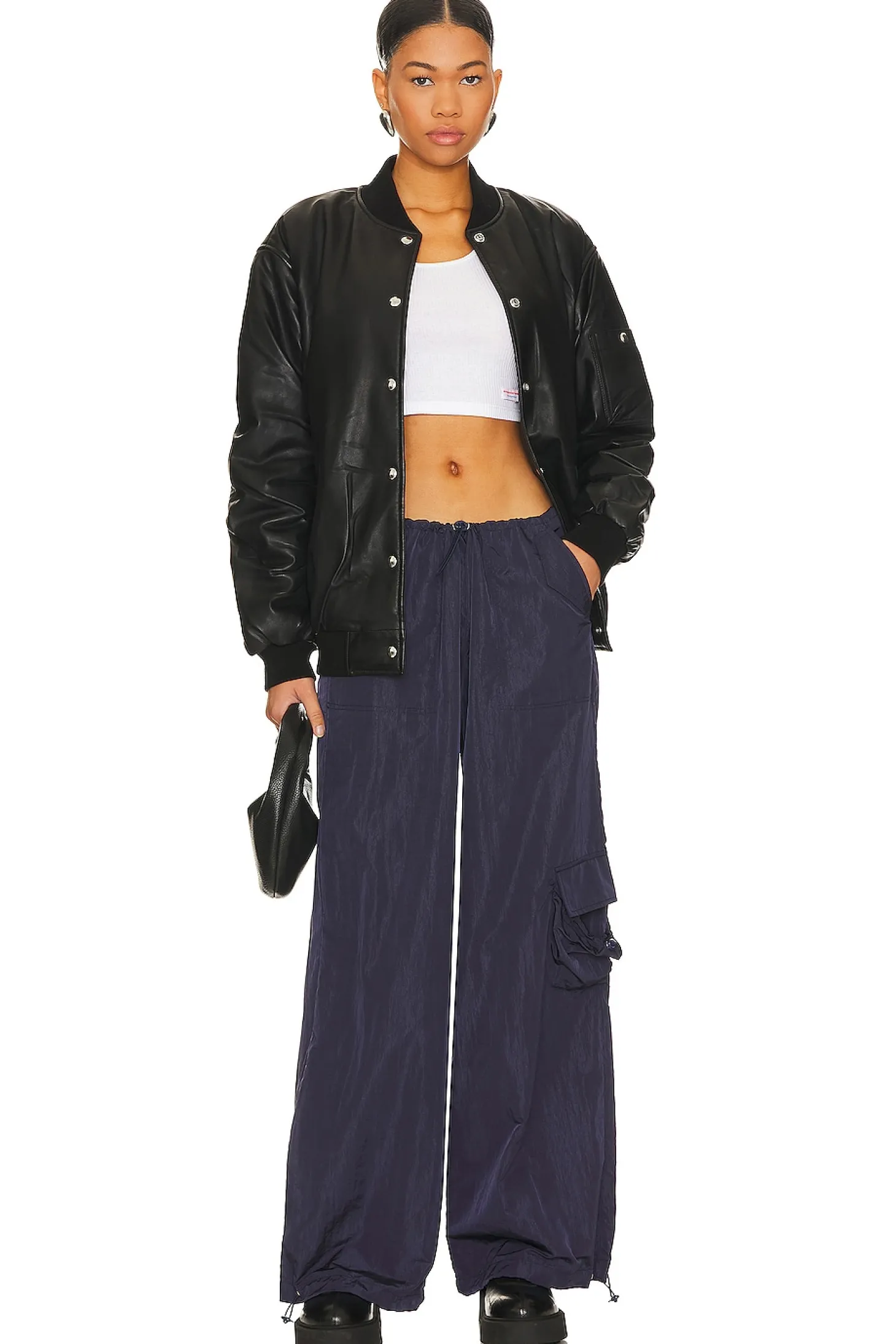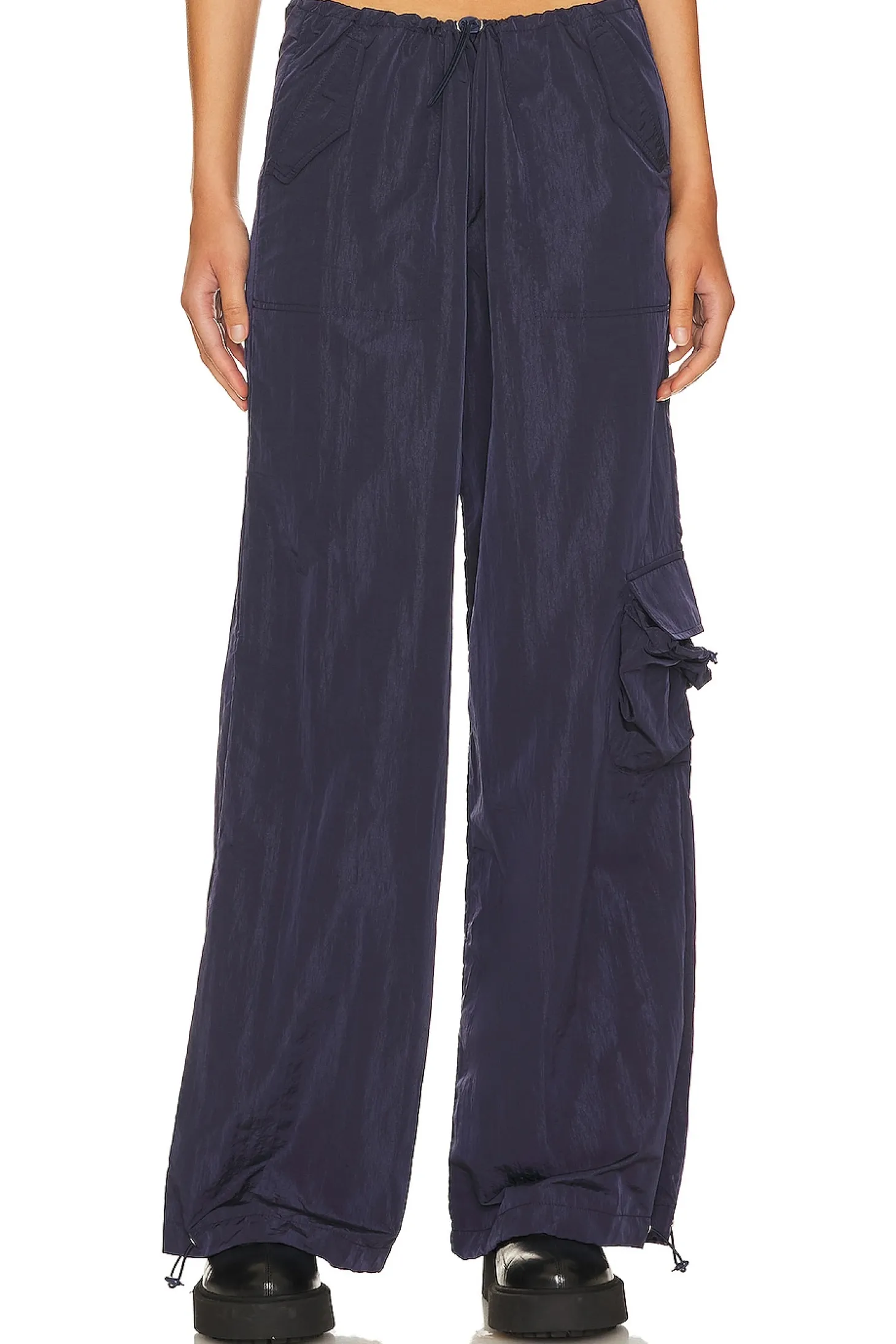 100% nylon.Made in China.Hand wash.Adjustable drawstring elastic waistband.Side slant pockets.Challis fabric with drawstring hem.26" at the knee and 26" at the leg opening