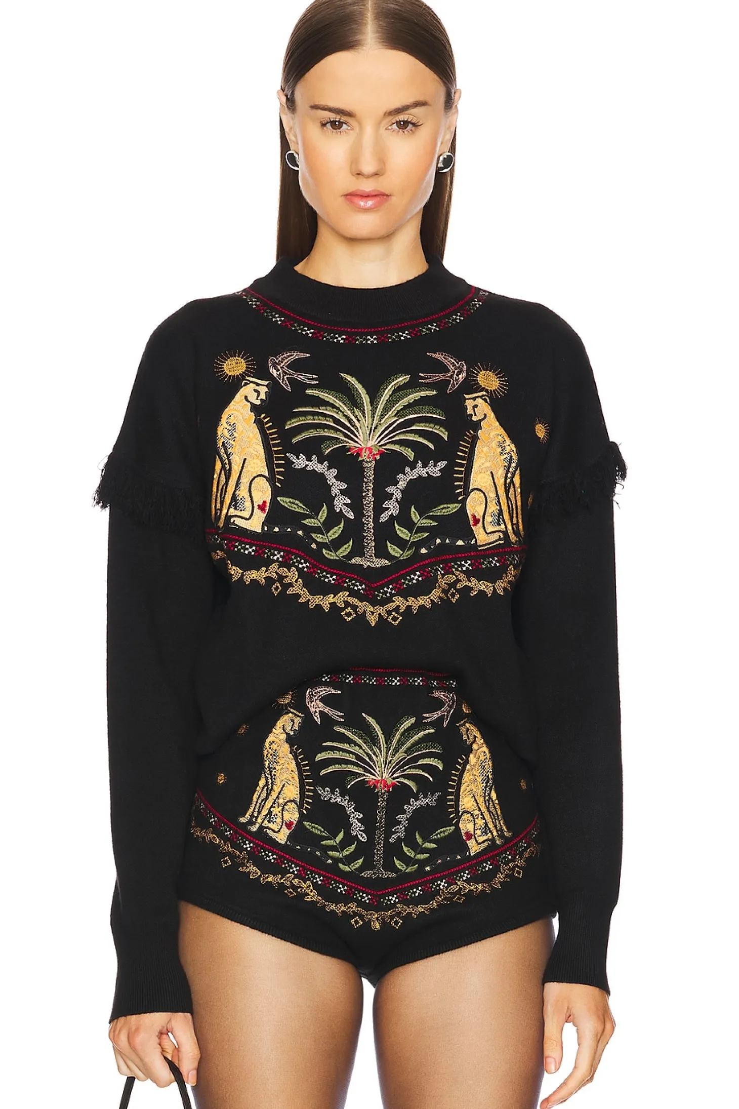 50% viscose 28% polyester 22% polyamide.Made in China.Machine wash.Pull-on styling.Embroidered graphic.Knit fabric.Item not sold as set