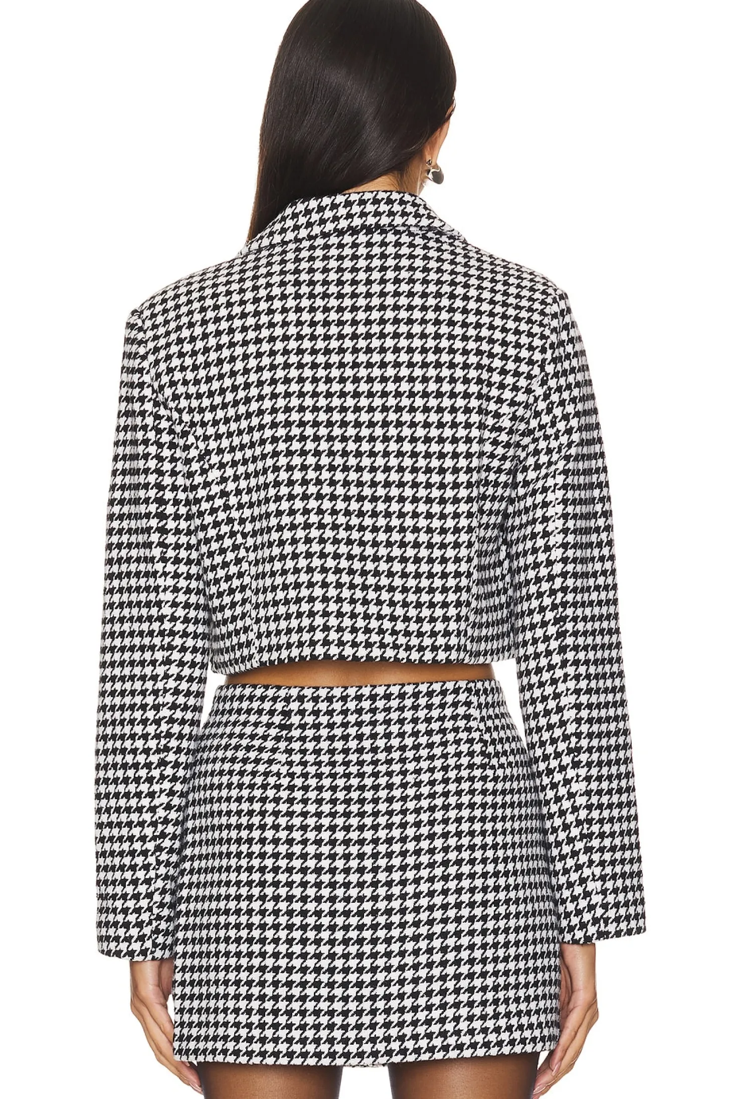 Self: 53% polyester 14% rayon 12% acrylic 9% nylon 9% cotton 3% wool Lining: 100% polyester.Made in China.Machine wash.Front button closure.Lapel collar.Cropped styling