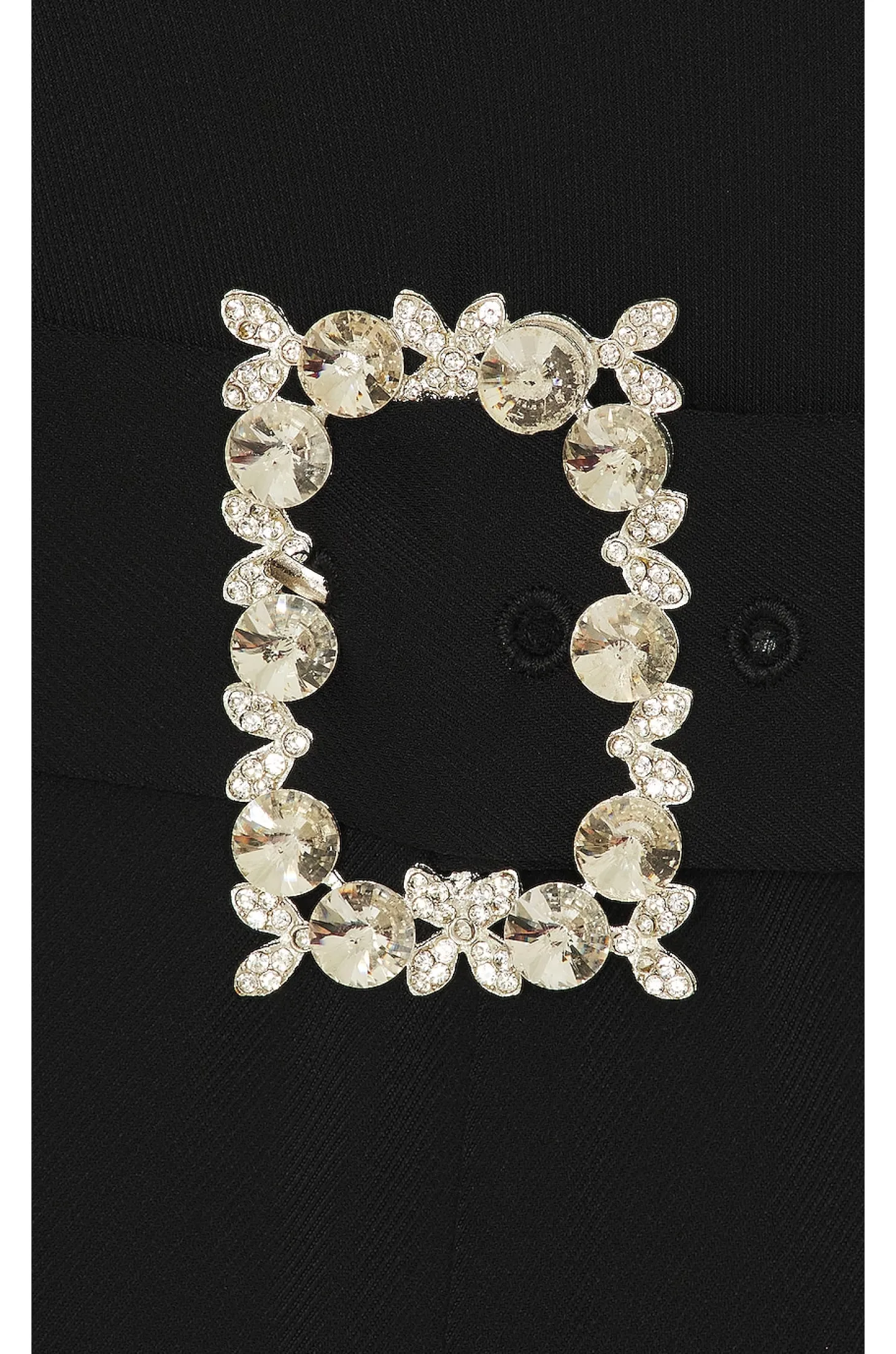 100% polyester .Made in USA.Machine wash .Hidden back zipper closure.Back hook and eye closure.Detachable waist belt with crystal embellished accent.Jersey fabric