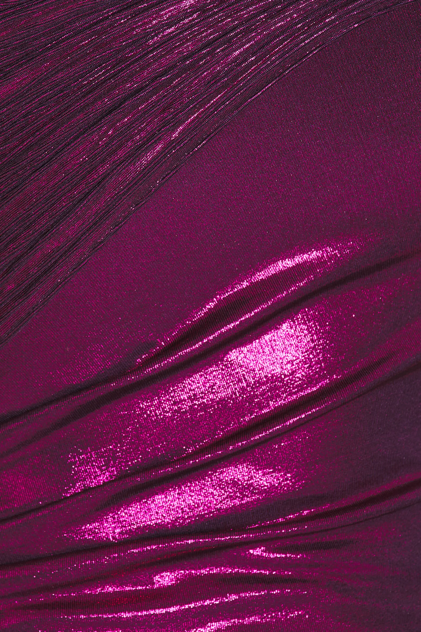 Polyester blend.Made in India.Dry clean only.Fully lined.Hidden back zipper with hook and bar closure.Boned bodice.Strapless design with structured bodice.Neckline to hem measures approx 35" in length