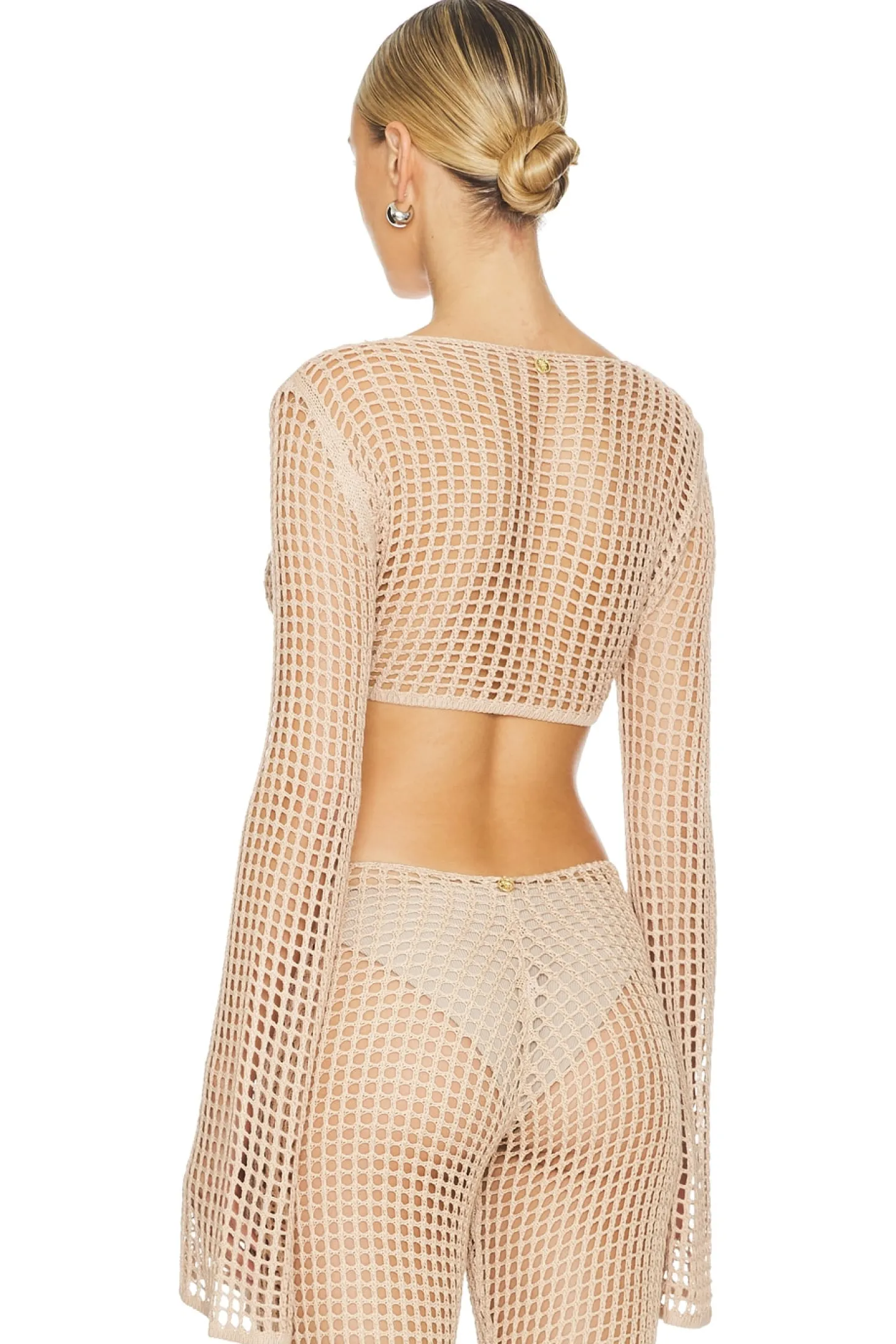 100% viscose.Made in China.Hand wash.Front tie closure.Lightweight open crochet fabric.Item not sold as a set