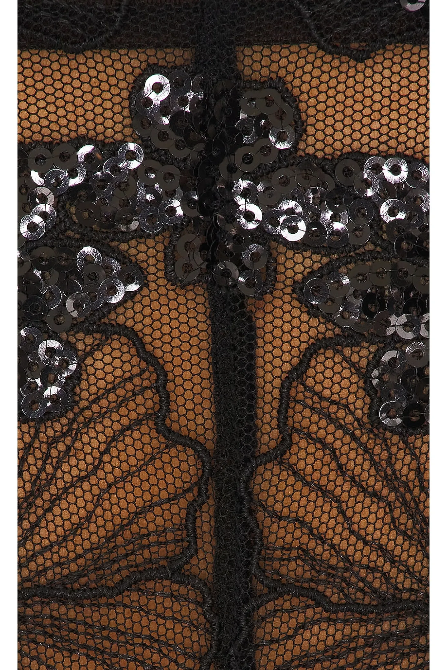 Self 1: 100% polyester Self 2: 85% polyamide 15% elastane Self 3: 92% silk 8% elastane.Made in China.Hand wash.Unpadded underwire cups.Dual back S-hook closures with adjustable back strap.Adjustable shoulder straps.Tonal sequined lace fabric.Item not sold as a set