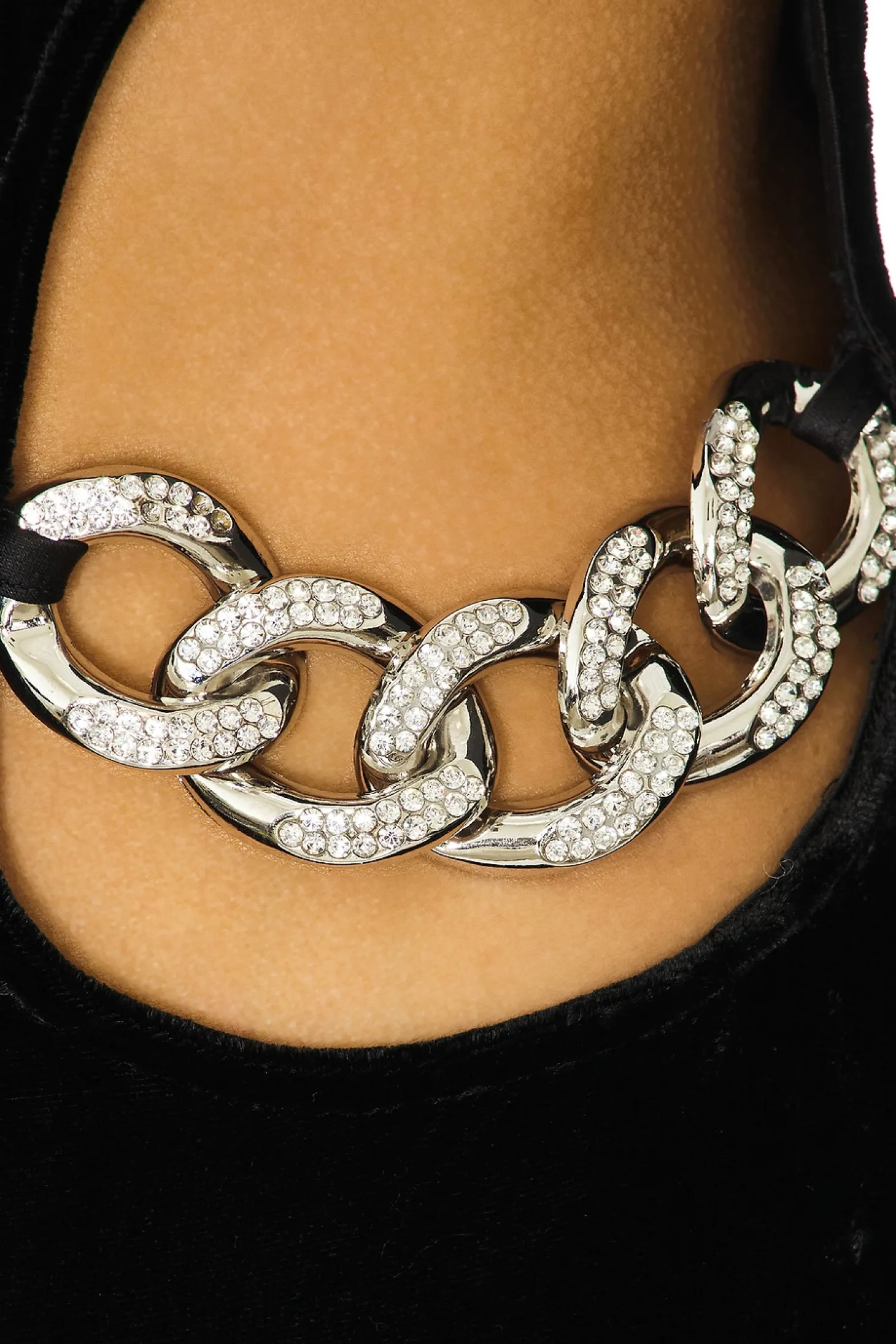 Self: 82% viscose 18% silk Lining: 100% polyester.Made in China.Dry clean only.Unlined.Hidden back zipper closure.Cut-out design with rhinestone embellished hardware.Lightweight velvet fabric with back vent