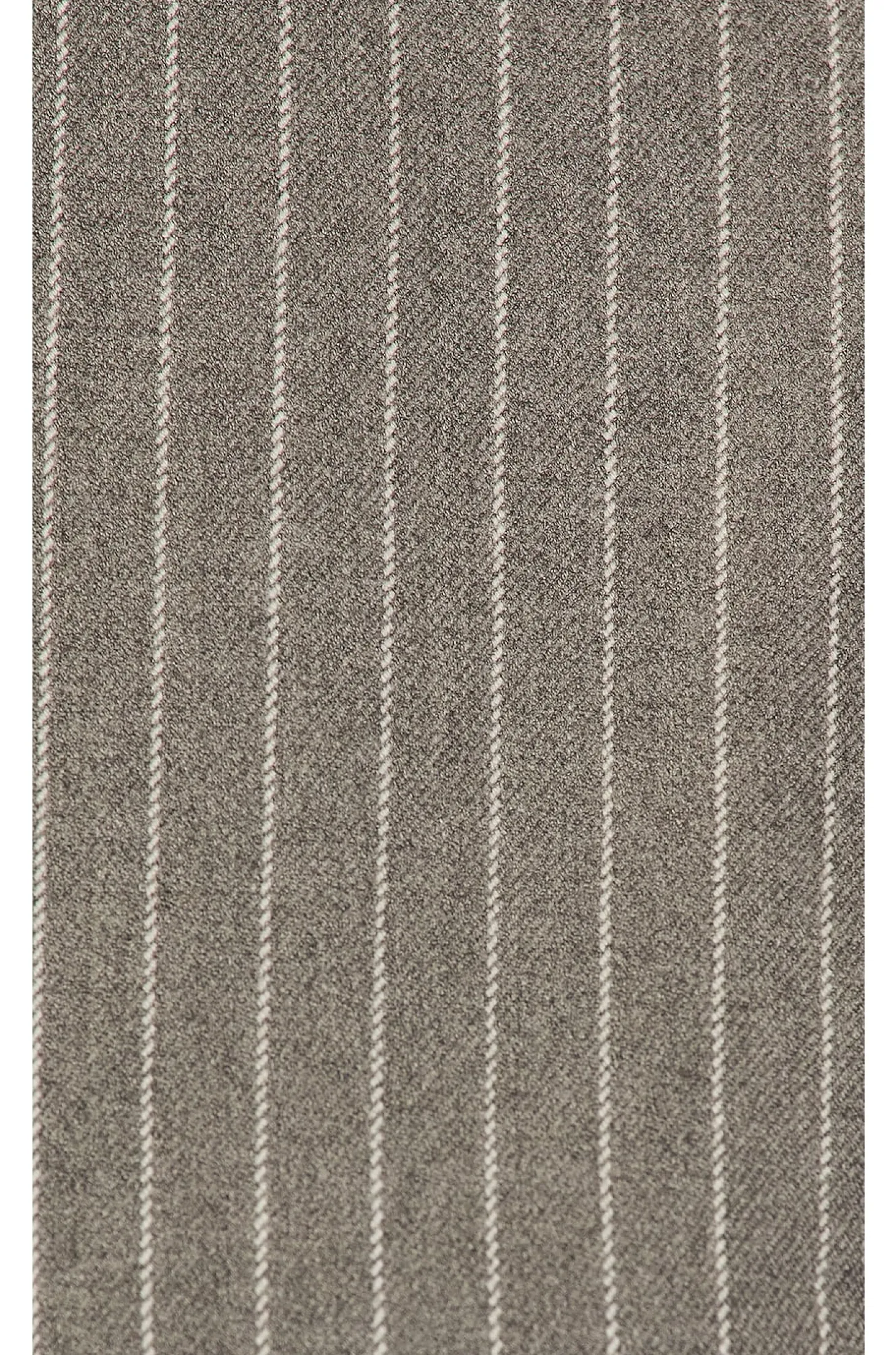 63% polyester 33% viscose 4% elastane.Made in China.Dry clean only.Zip fly with button closure.Side slant and back welt pockets.Pleated detail.Item not sold as a set.22" at the knee narrows to 18" at the leg opening