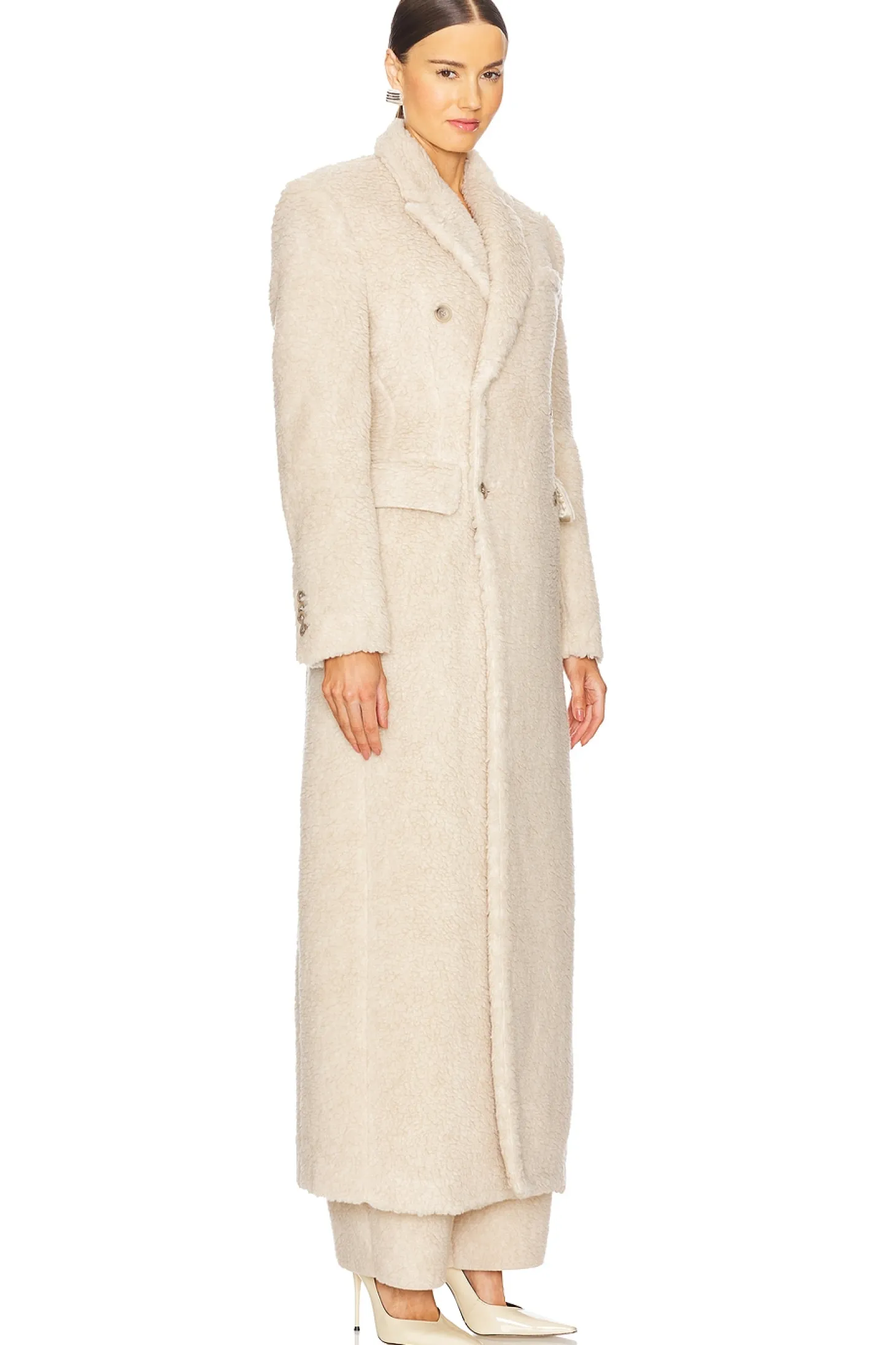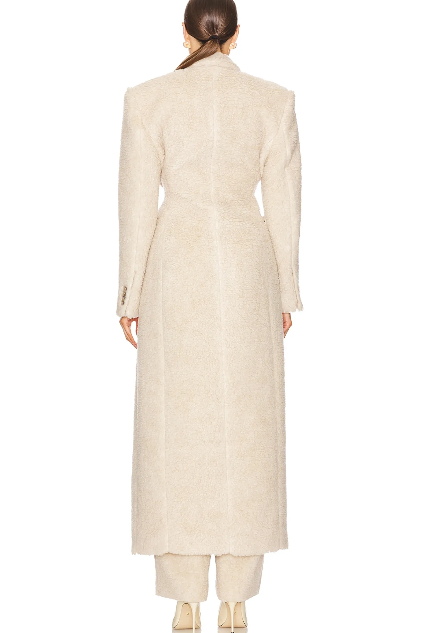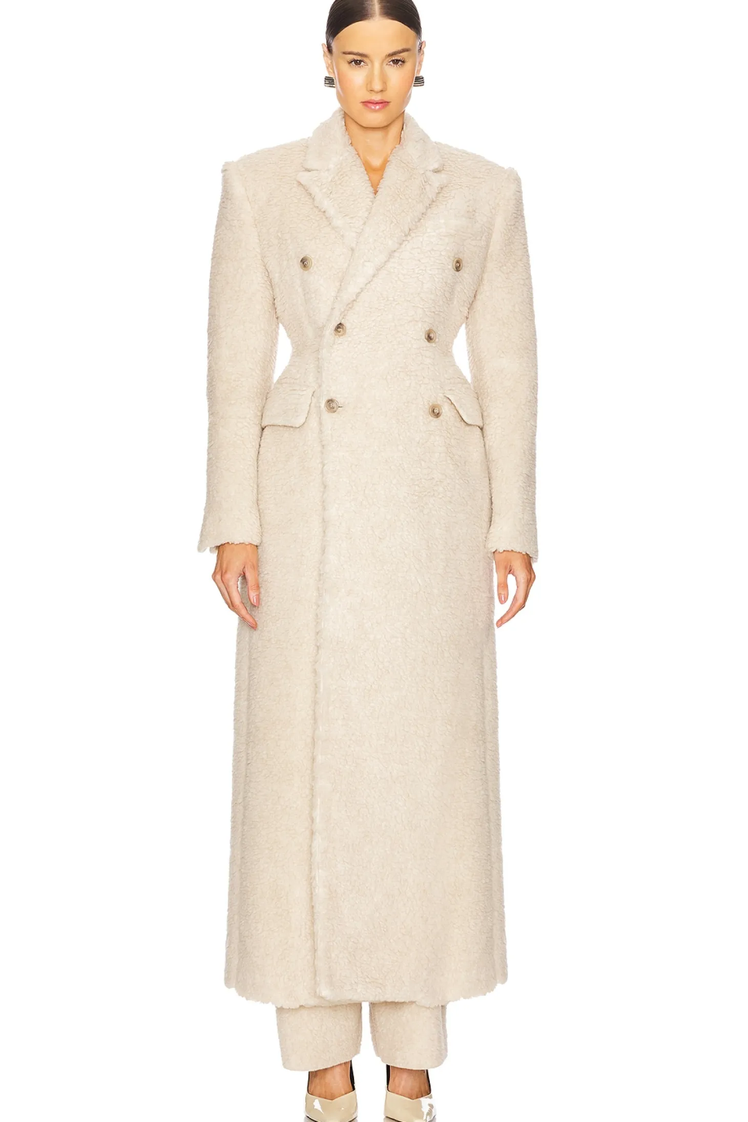 Self: 60% polyester 40% wool Lining: 100% viscose.Made in Italy.Dry clean only.Double breasted closure.3-pocket design.Faux button cuffs.Sherpa exterior with padded shoulders.Item not sold as set