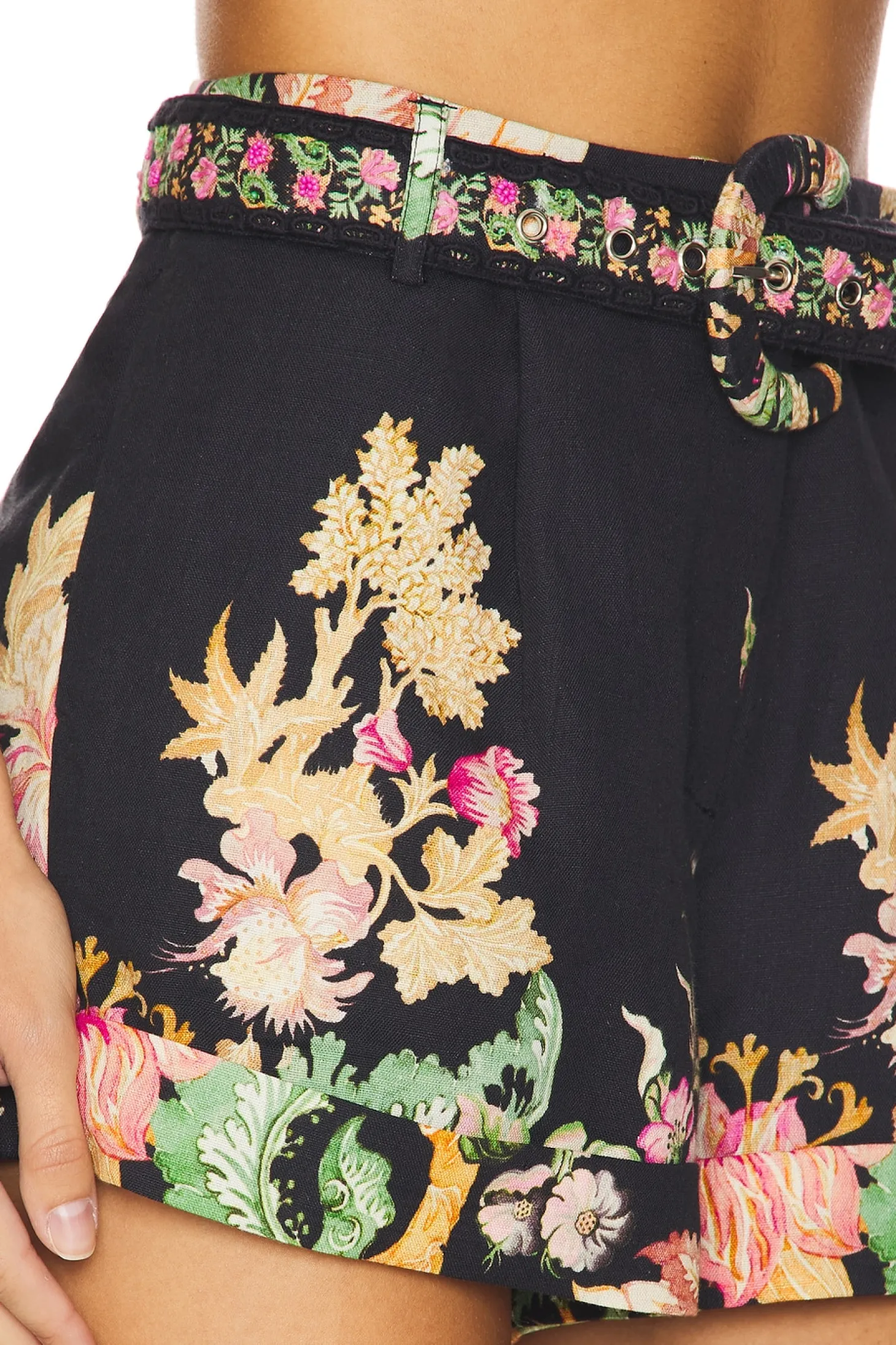 Self: 55% linen 45% cotton Lining: 100% cotton.Made in India.Dry clean only.Zip fly with hook and bar closure.Optional belt at waist.Side slit pockets.Item not sold as a set.Shorts measure approx 11.5" in length