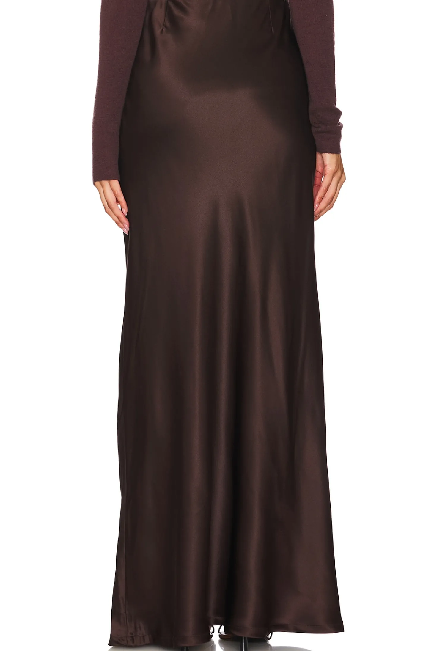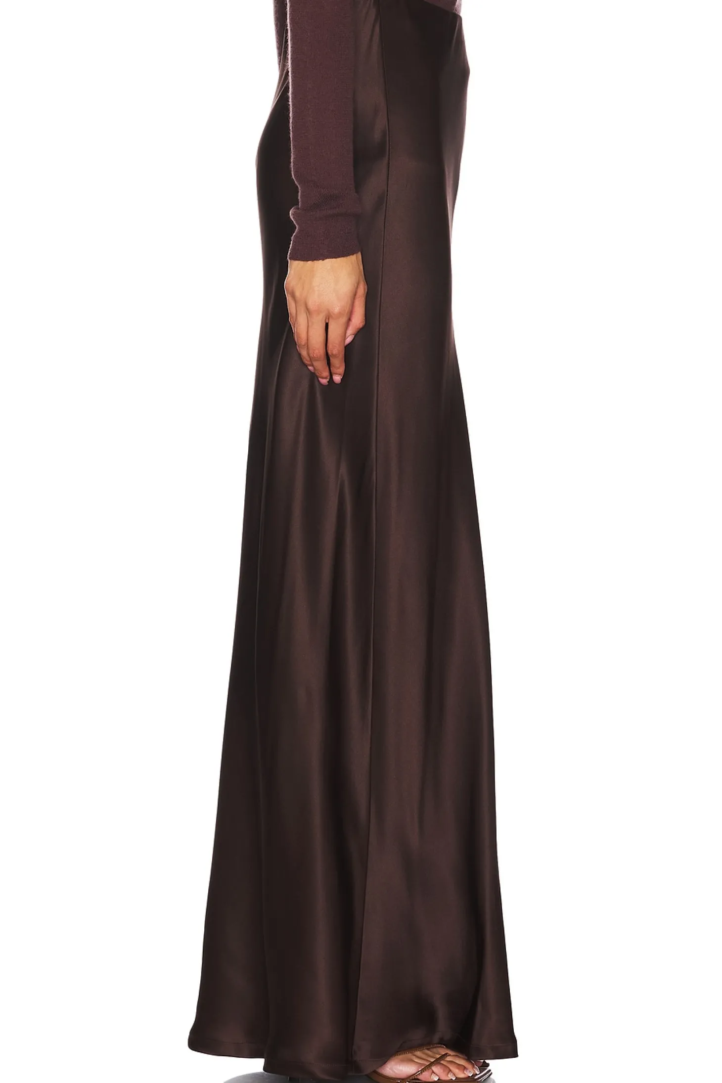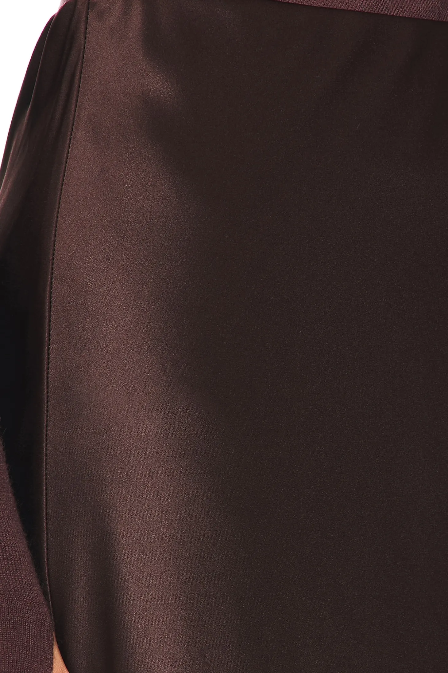 100% silk.Made in USA.Dry clean only.Unlined.Pull-on styling.Elasticized waistband.Lightweight satin fabric Item not sold as a set.Skirt measures approx 46" in length