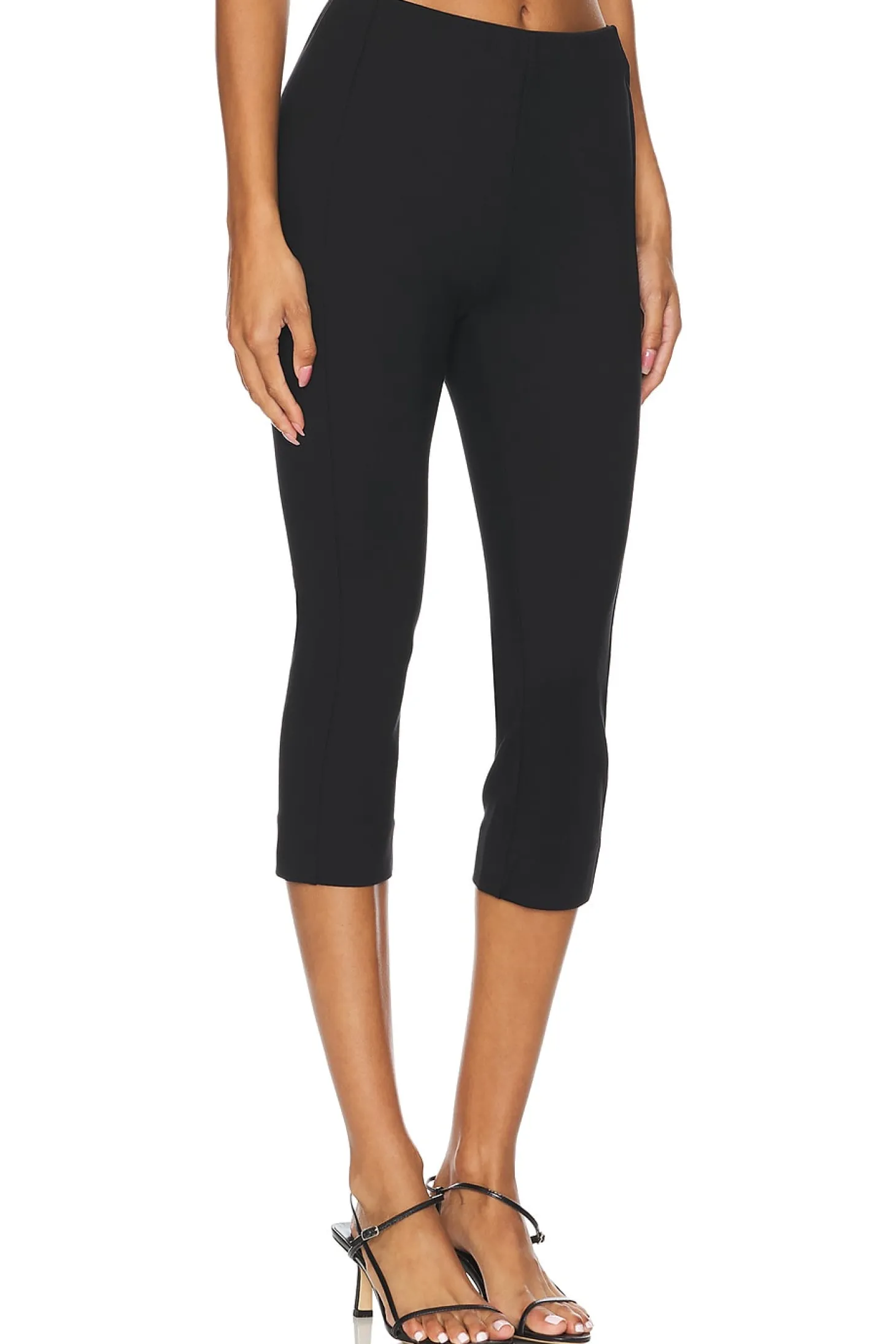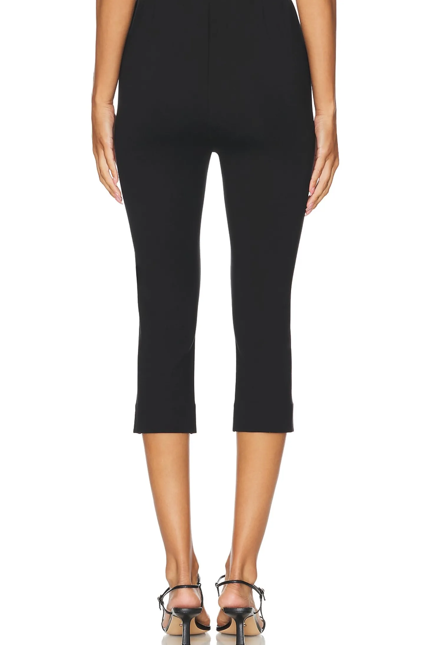 66% viscose 30% polyamide 4% elastane.Made in China.Machine wash.Elastic waistband.Cuffed hem.Stretch ponte fabric.15" at the knee narrows to 12" at the leg opening