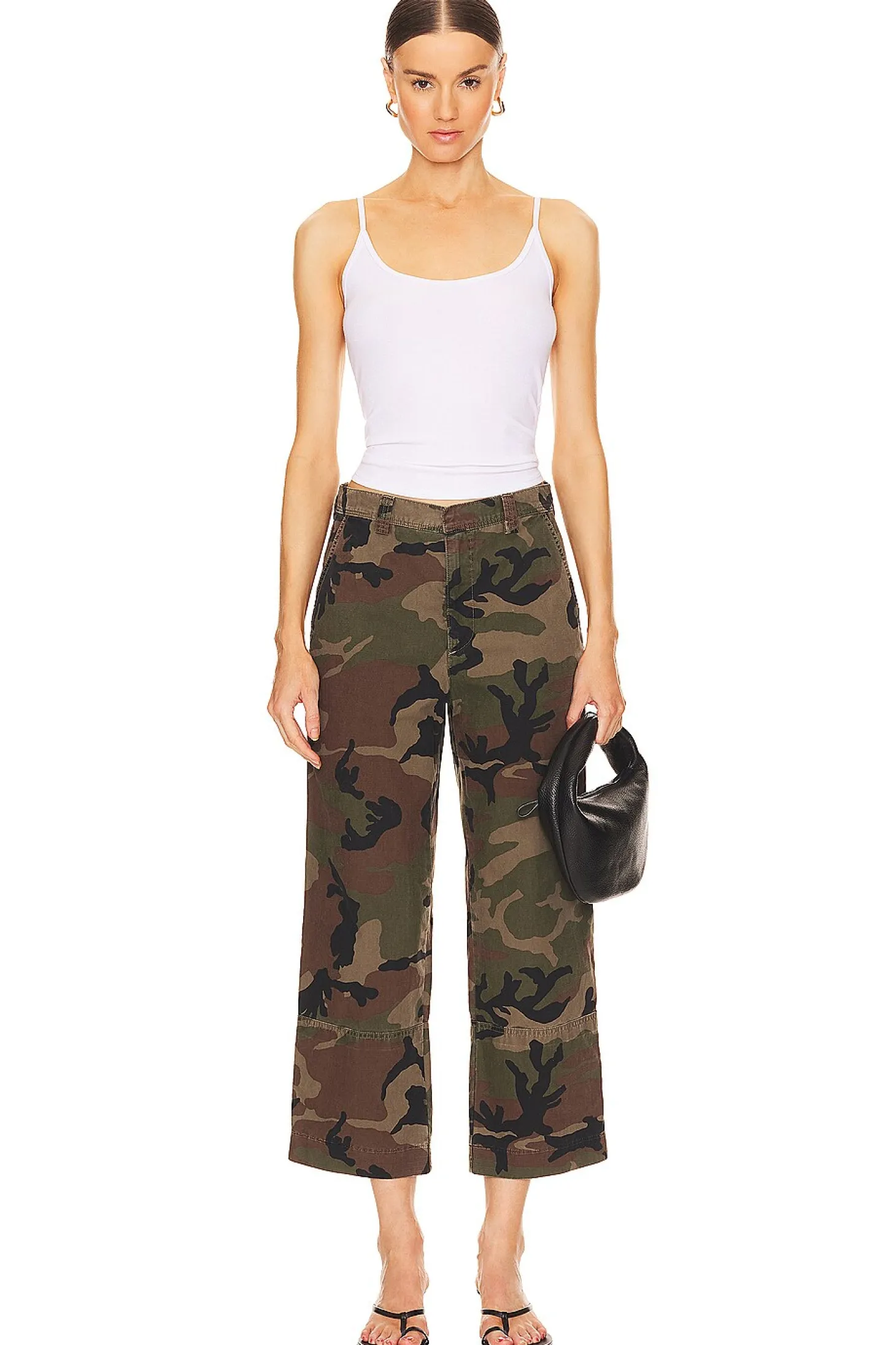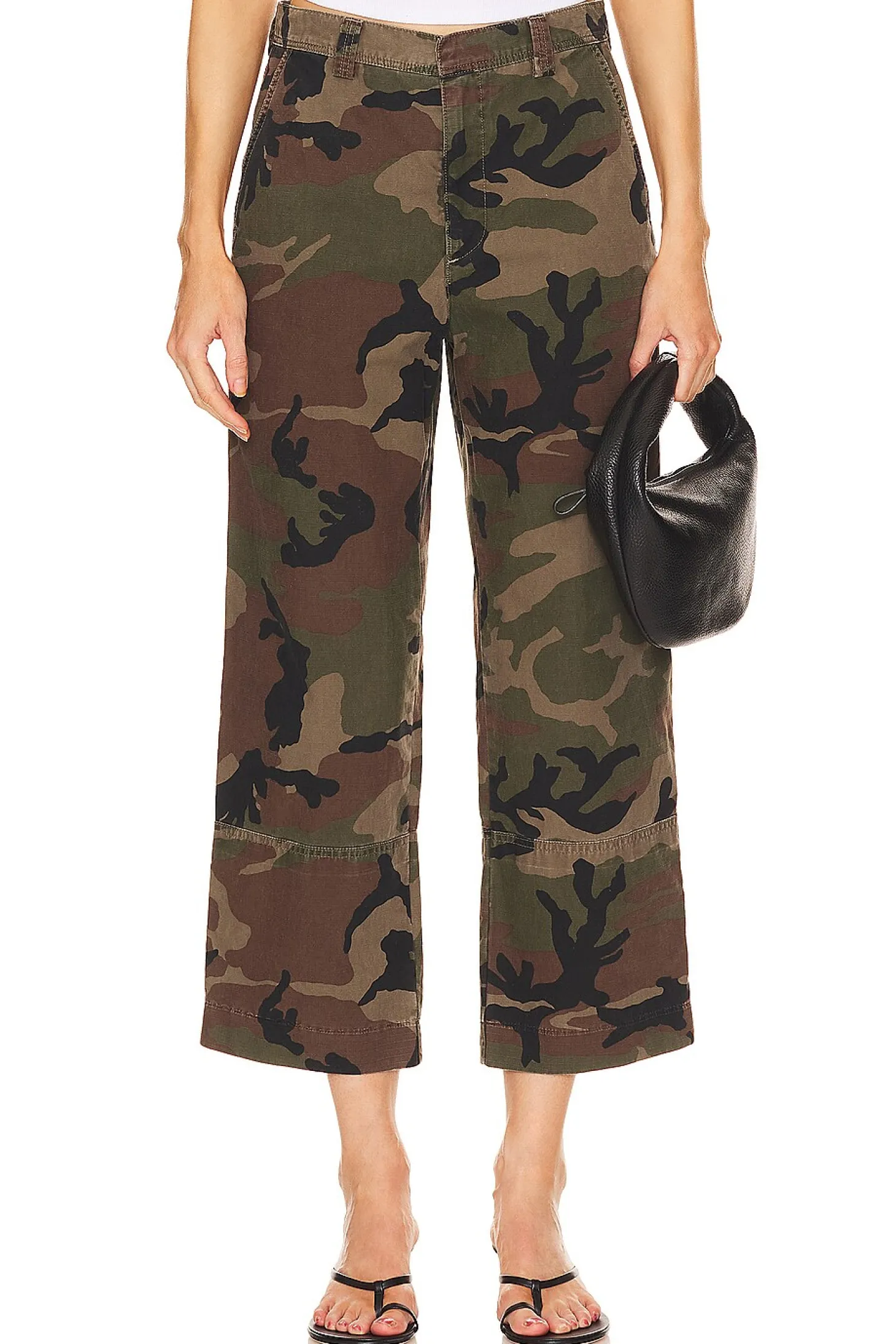 Plain weave textile.Imported.Machine wash recommended.Zip fly with hook and bar closure.Side slant pockets and back welt pockets.20" at the knee narrows to 16" at the leg opening