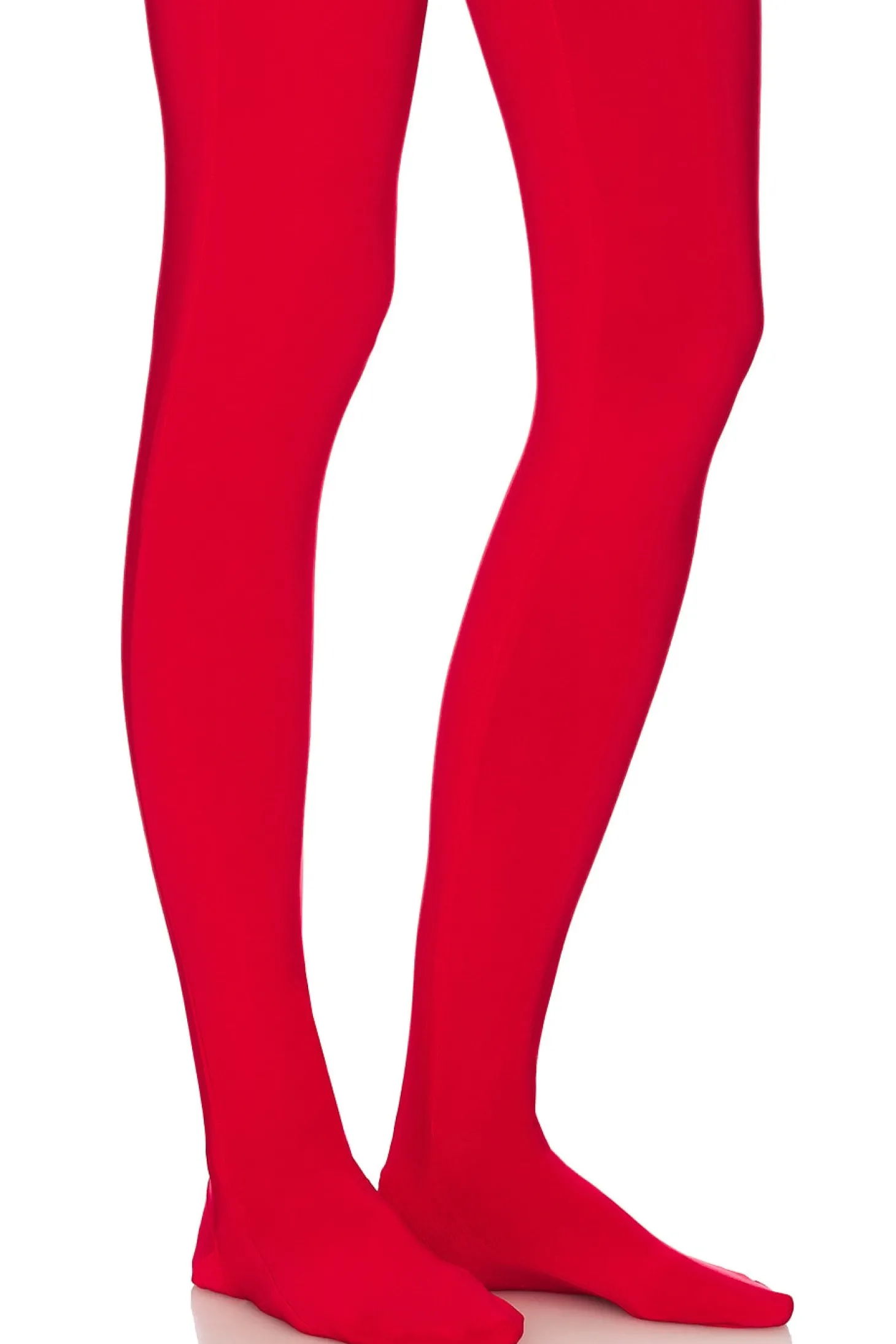 Self: 95% polyester 5% spandex Trim: 82% nylon 18% spandex.Made in China.Machine wash.Pull-on styling.Attached sock foot legging.Stretch fabric with mesh panels.style runs large, size down