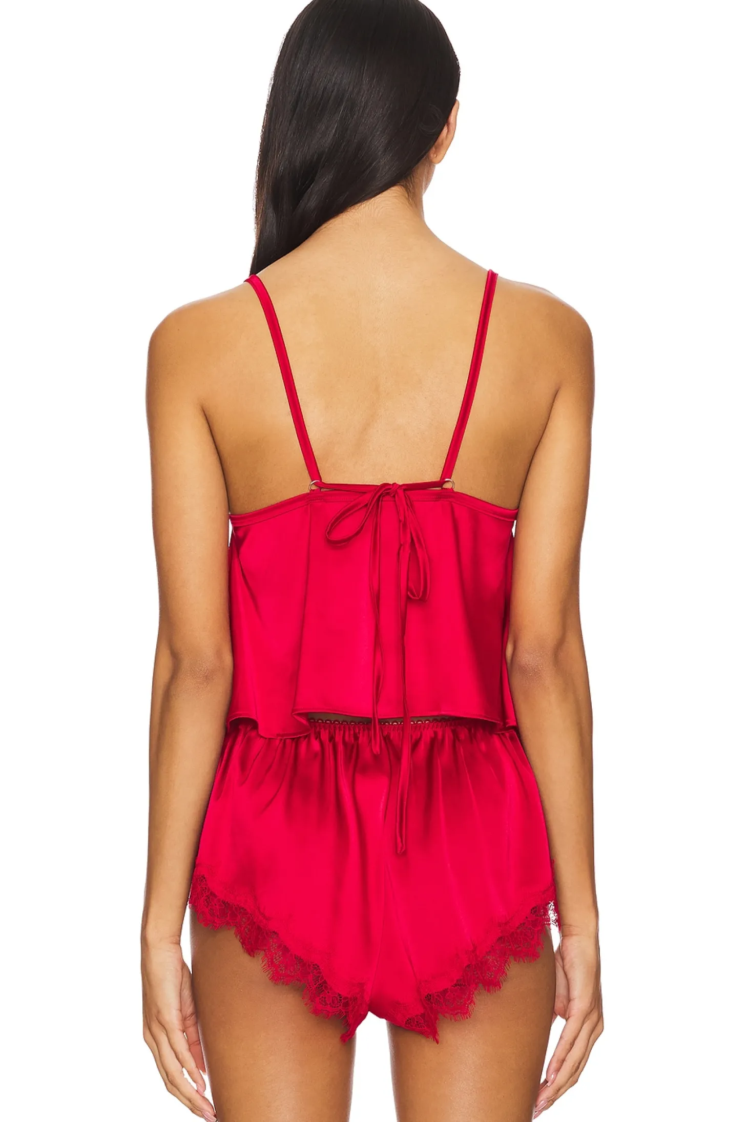 90% polyester 10% elastane.Made in China.Hand wash.Pull-on styling.Adjustable shoulder straps.Satin fabric with lace trim.Item not sold as set
