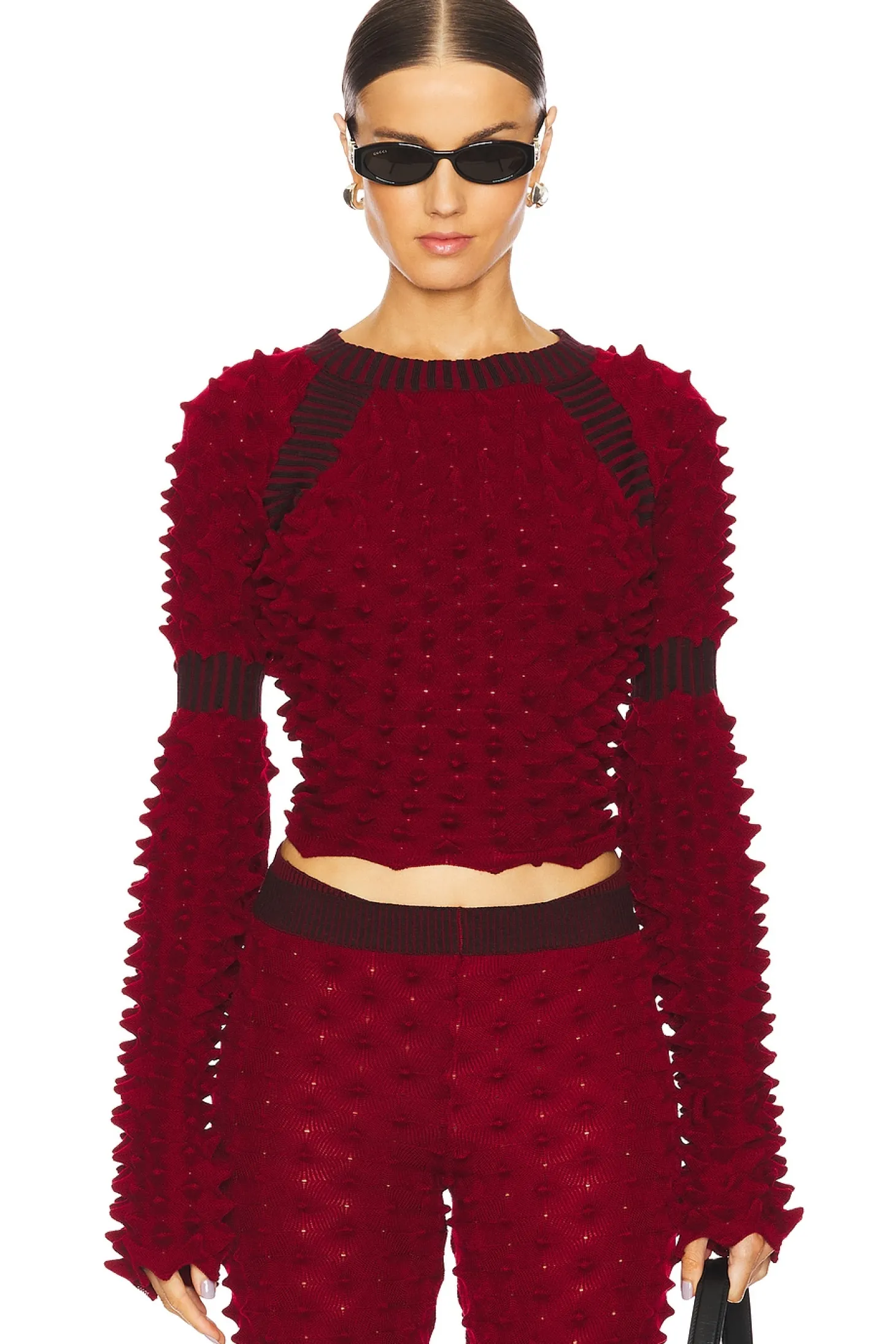 89% merino wool 11% polyamide.Made in Italy.Hand wash.Pull-on styling.3D textured design fabric.Midweight ribbed knit fabric Item not sold as a set