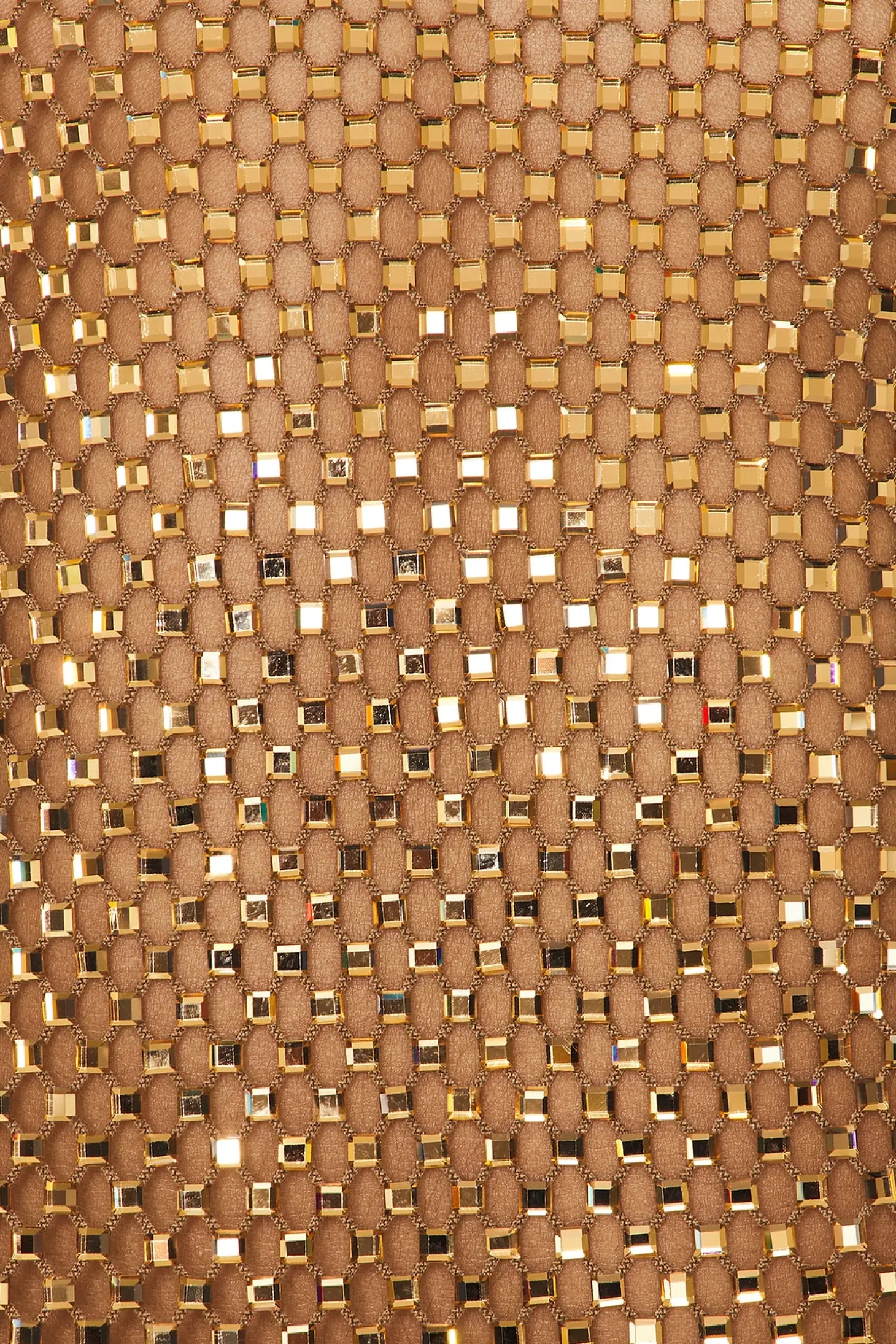 93% polyester 7% elastane.Made in Ukraine.Dry clean only.Pull-on styling.Tonal rhinestone embellishment.Garment is intentionally sheer, undergarments will show through.Item not sold as a set