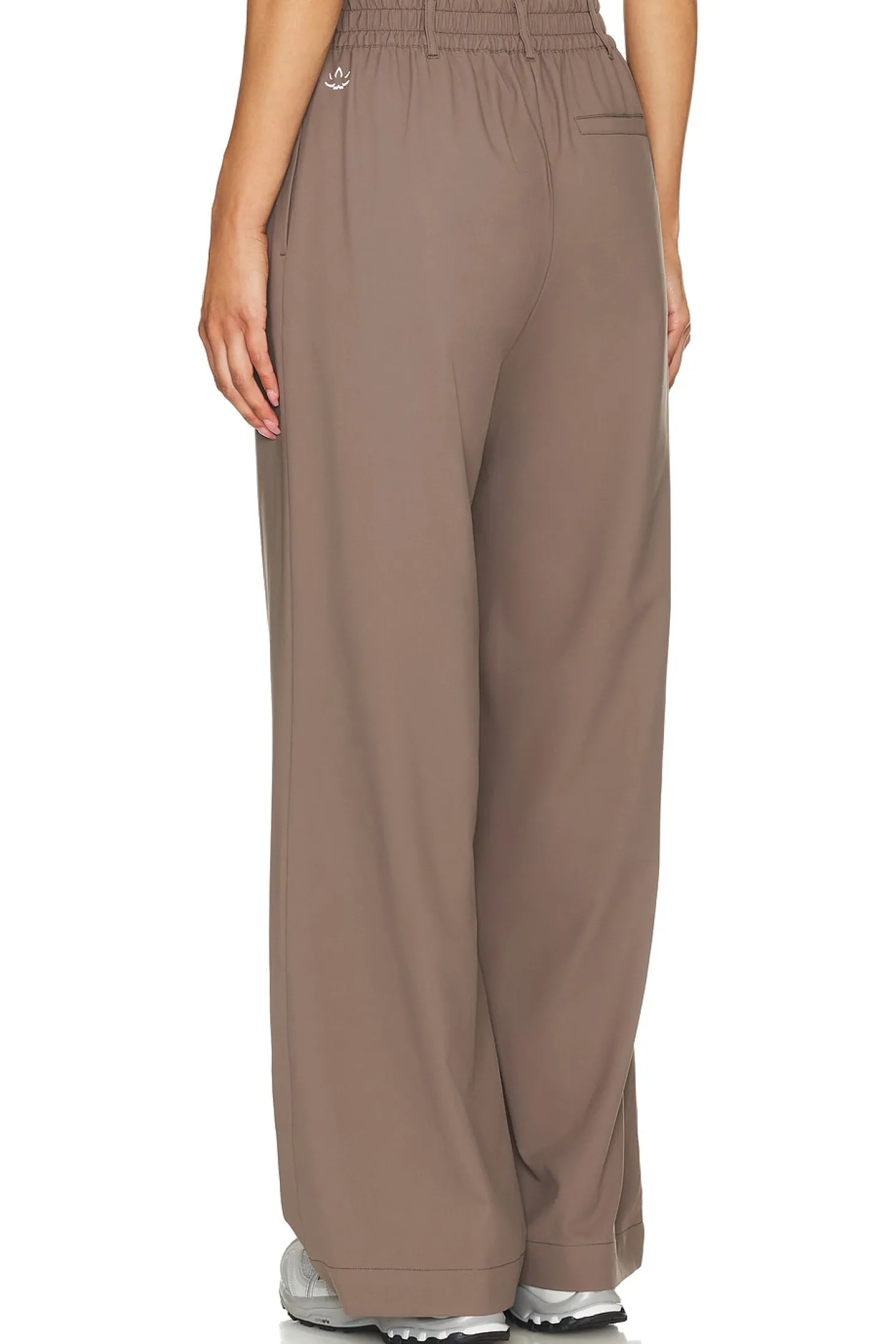100% polyester.Made in Vietnam.Machine wash recommended.Zip fly with button closure Elastic waistband.3 pocket styling.23" at the knee and 23" at the leg opening