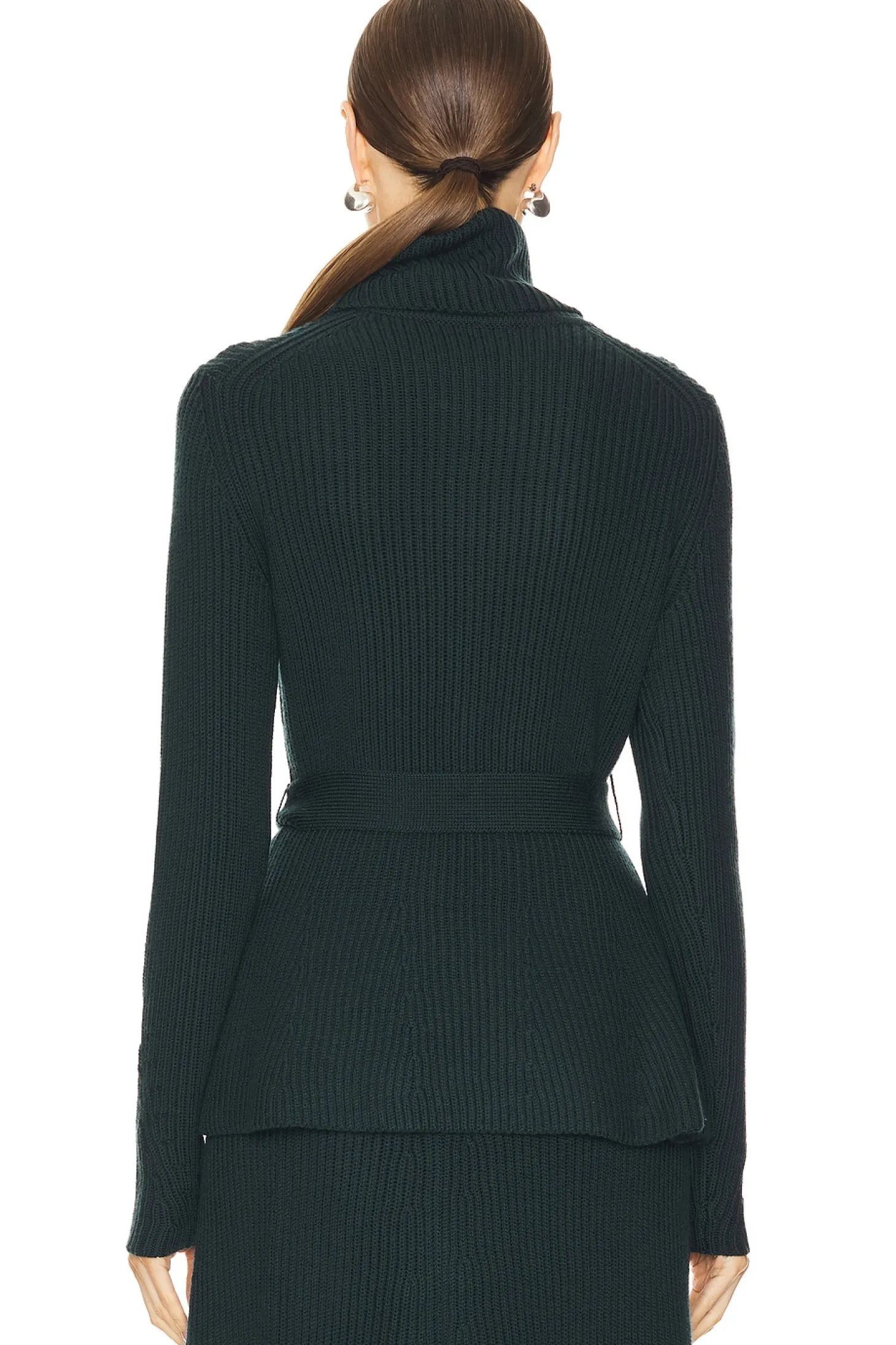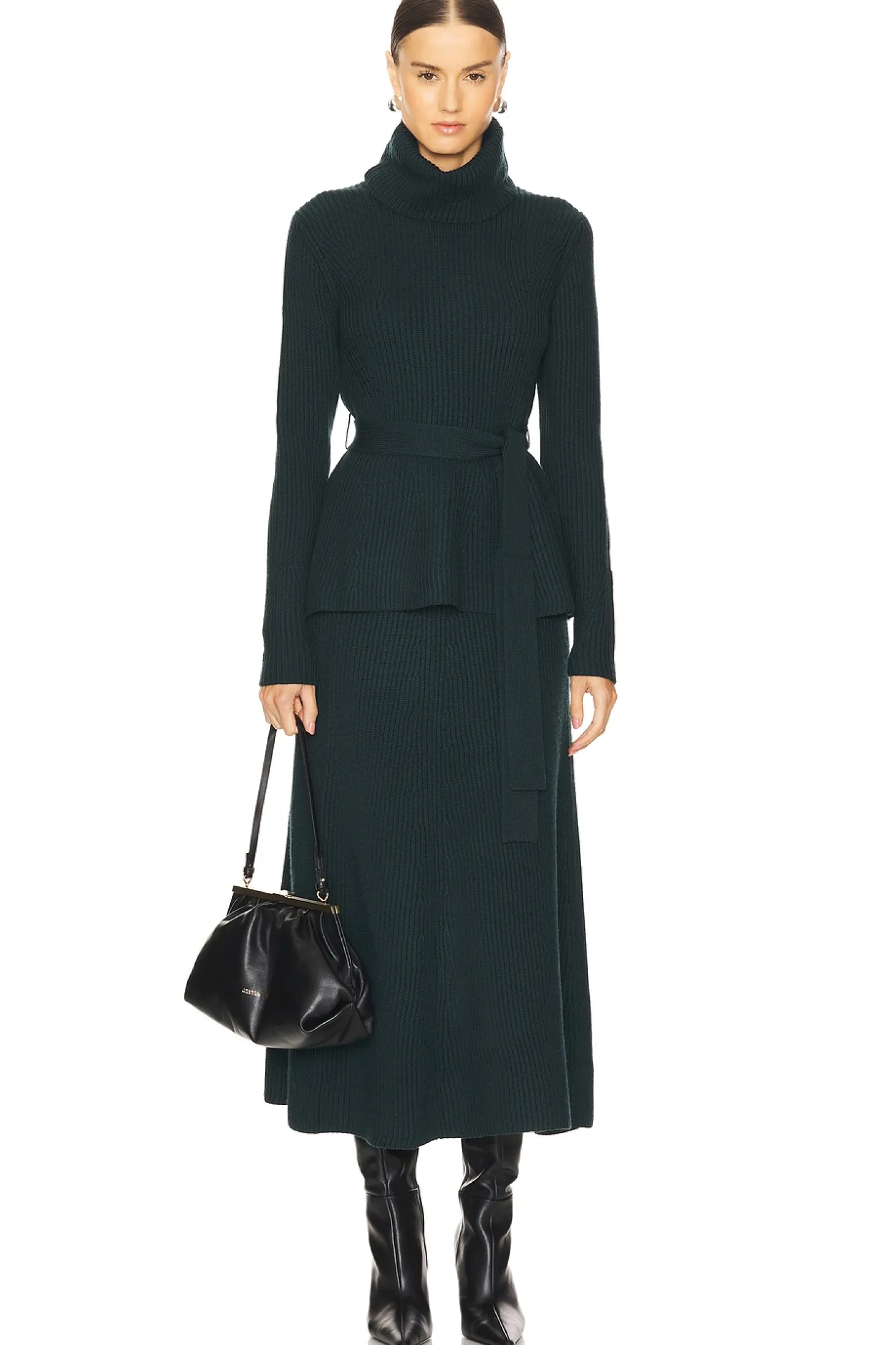 100% wool.Made in China.Dry clean only.Pull-on styling.Foldover turtleneck styling.Optional tie-up at waist.Midweight ribbed knit fabric Item not sold as a set