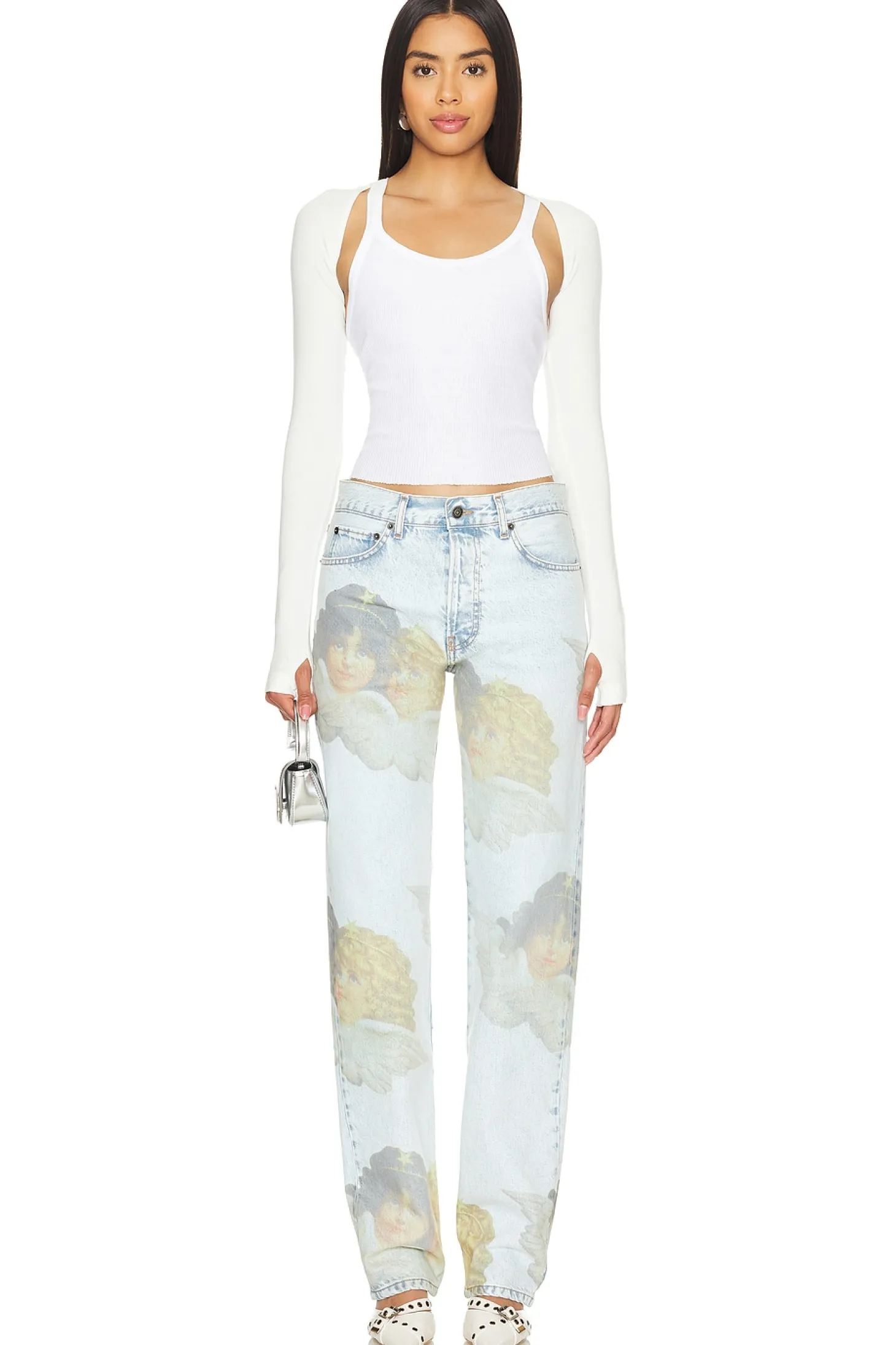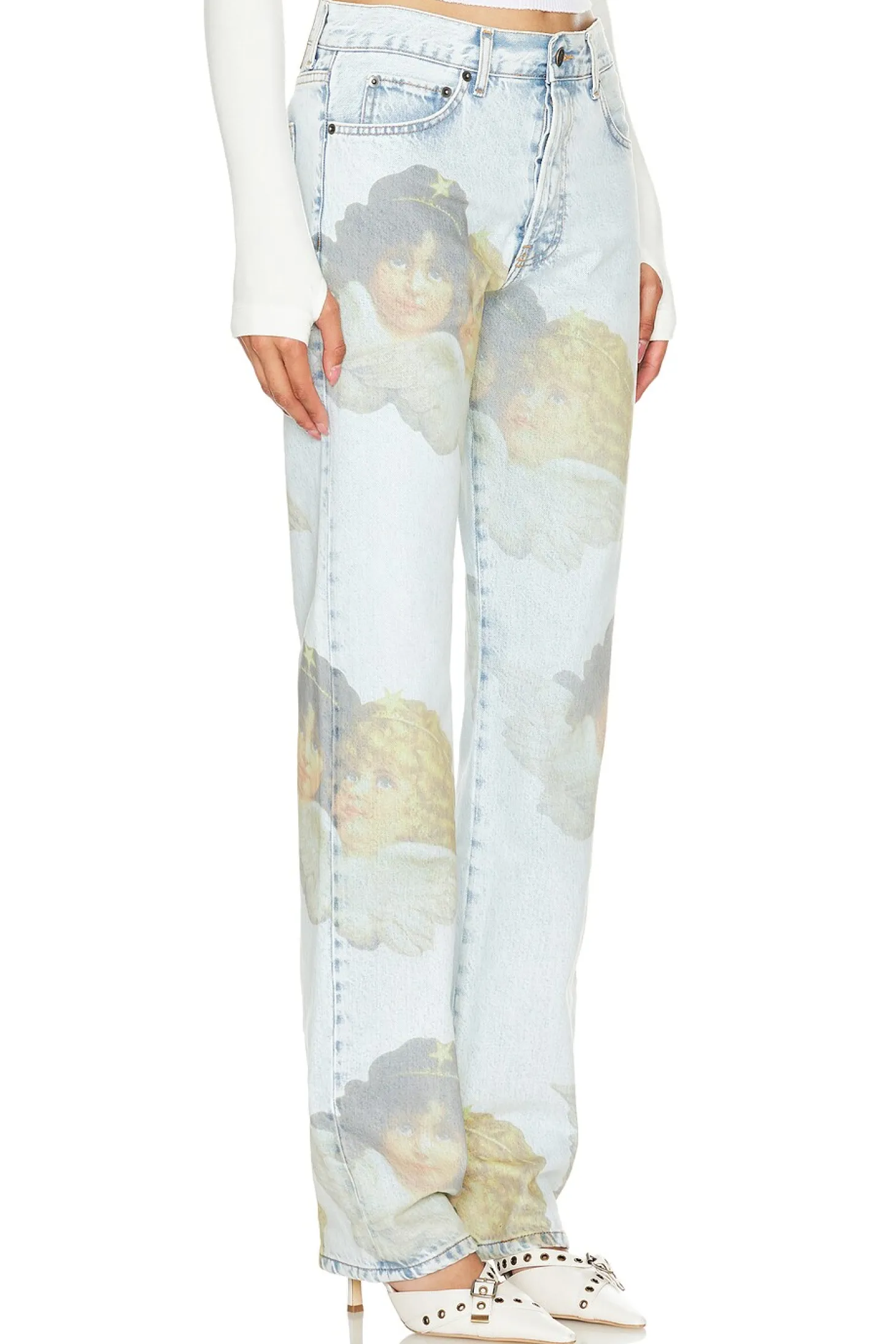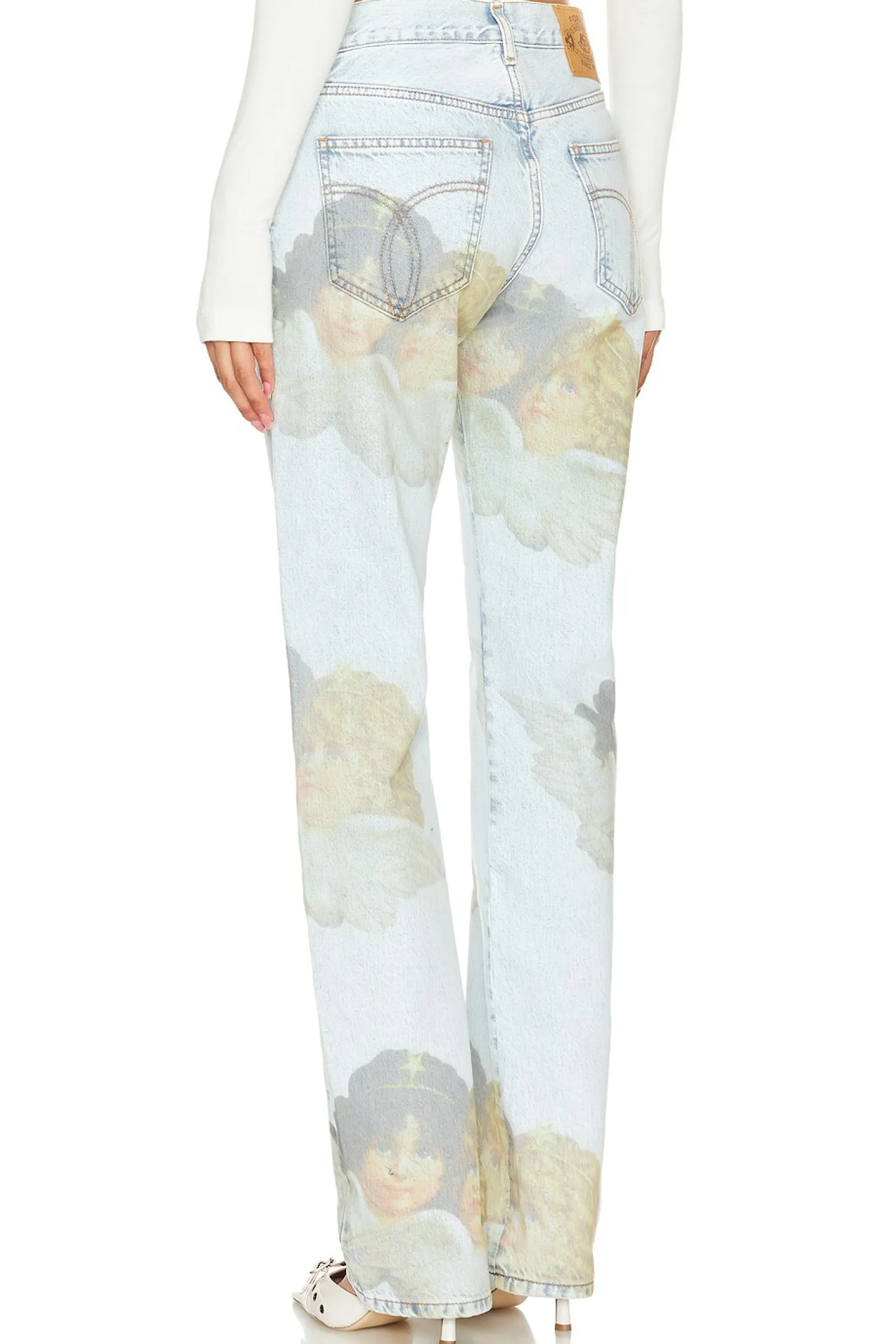 100% organic cotton.Made in Italy.Machine wash.Button fly.5-pocket design.Logo detail throughout.Midweight denim fabric.18" at the knee narrows to 14" at the leg opening