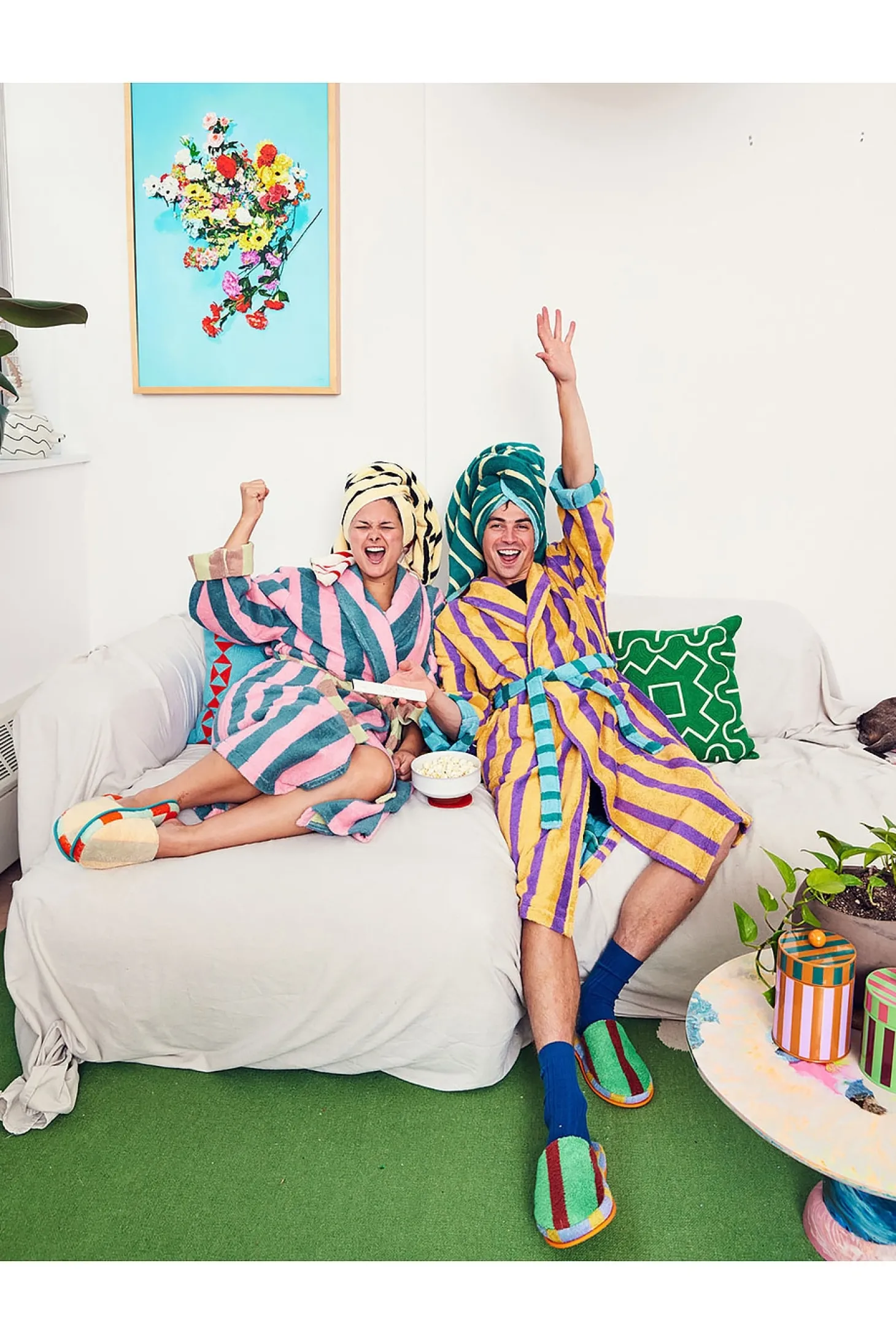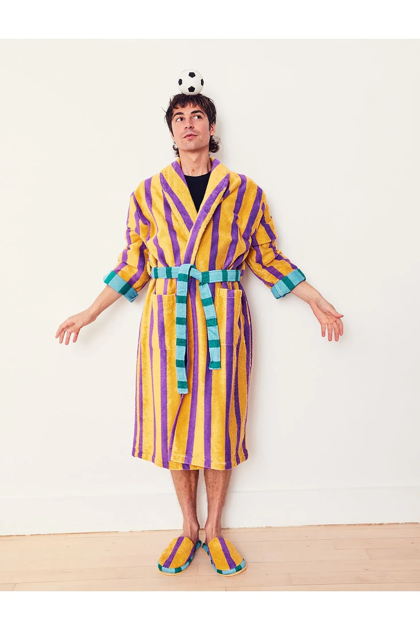 95% cotton 5% polyamide.Made in Portugal.Machine wash.Open style with optional waist tie.Front slip pockets.Midweight terrycloth fabric