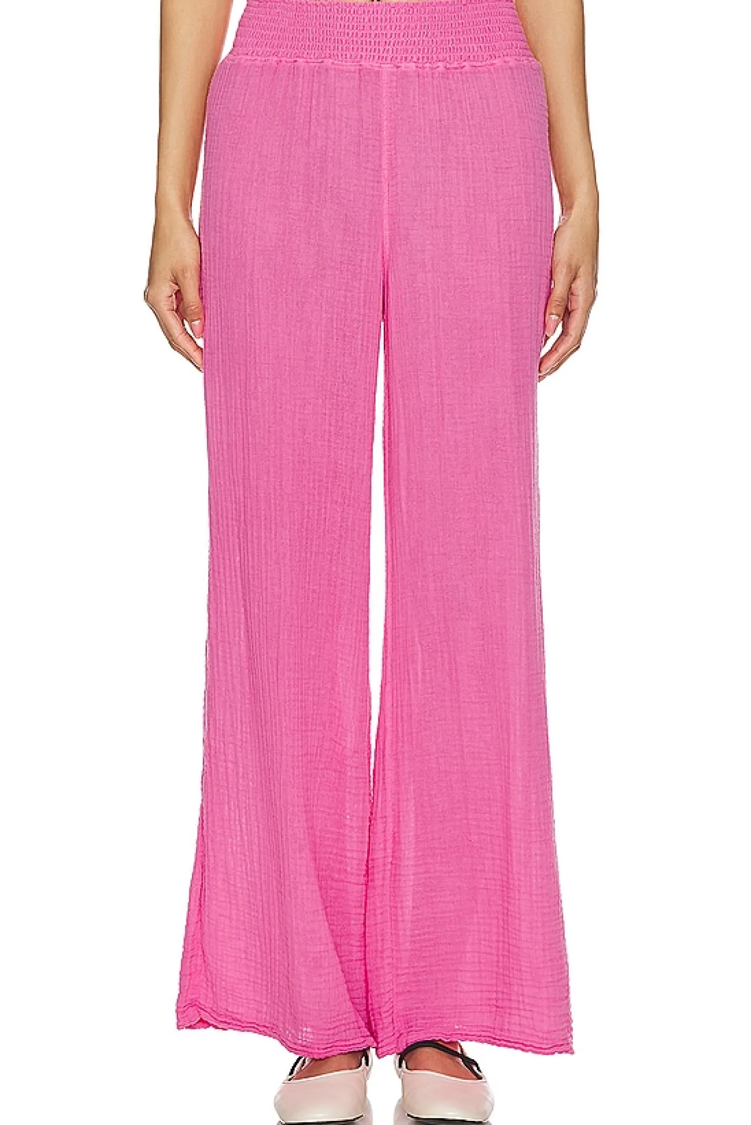 100% cotton.Made in USA.Machine wash.Pull-on styling.Waffle knit gauze fabric.Item not sold as set.Garment is made with a semi-sheer fabric, undergarments can show through.24" at the knee and 24" at the leg opening Size S waist circumference measures approx 24"