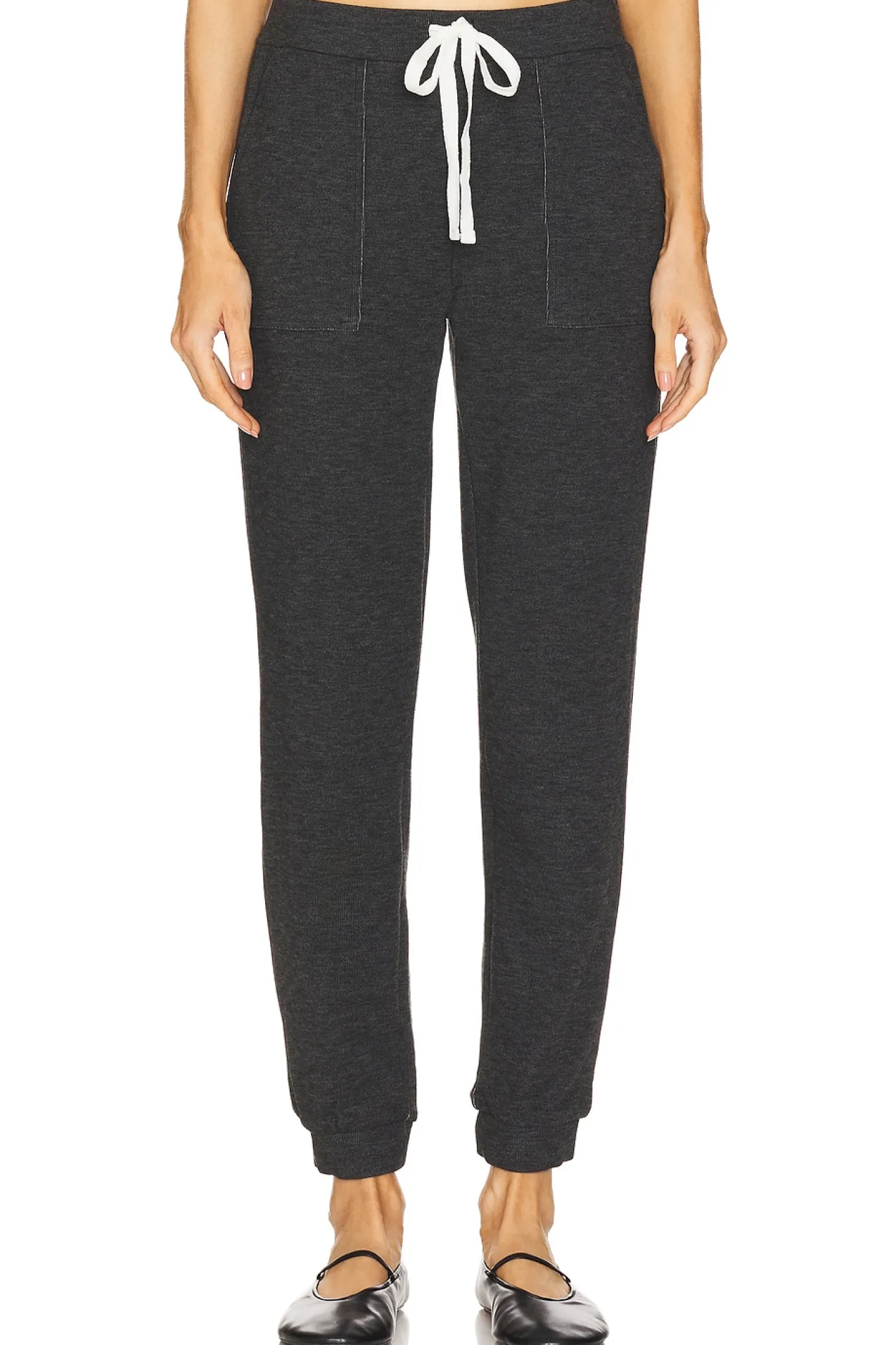 81% polyester 13% rayon 6% spandex.Made in China.Hand wash.Elastic waistband with drawstring.Side pockets.Fleece interior.Item not sold as set.16" at the knee narrows to 10" at the leg opening