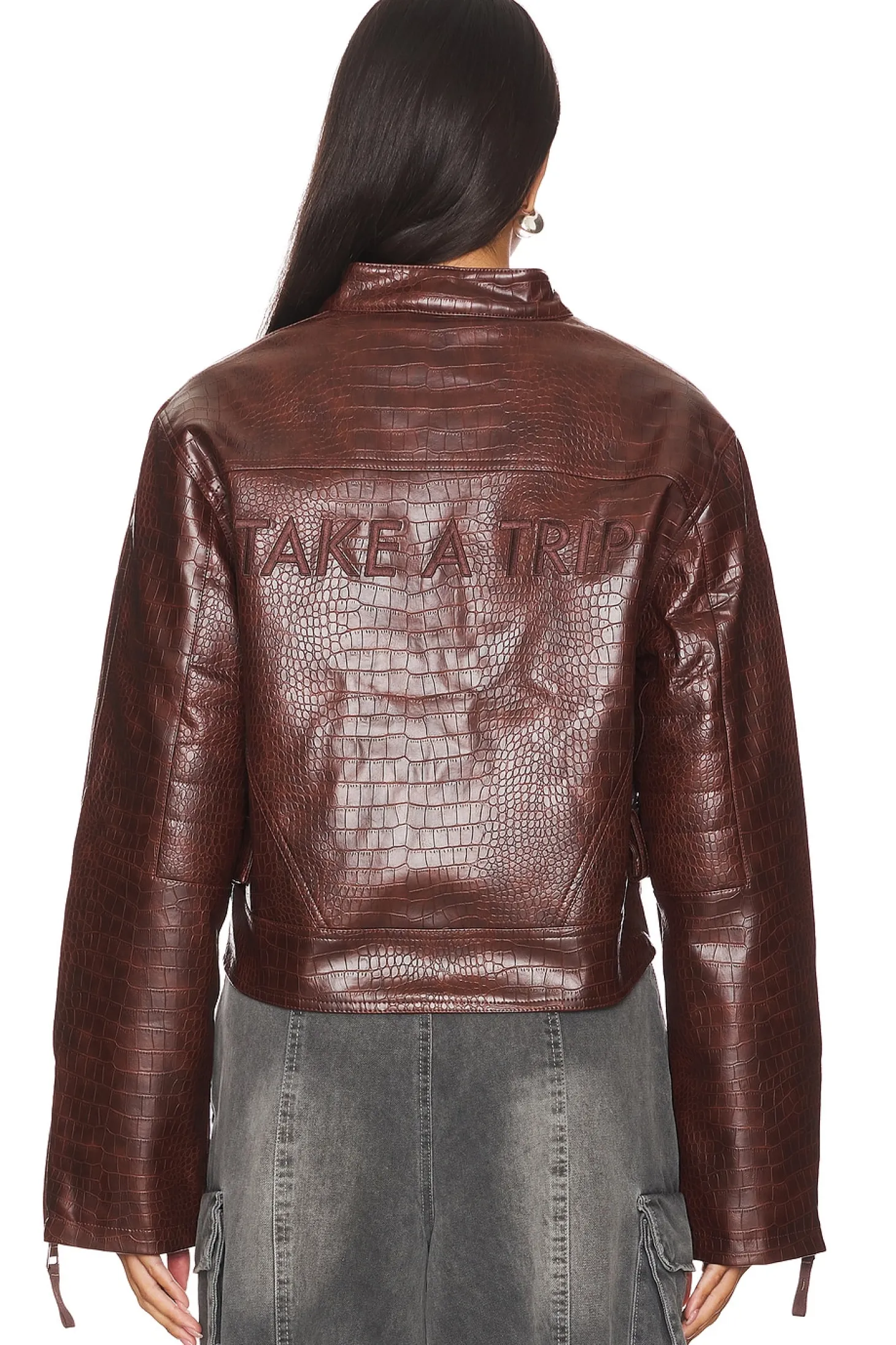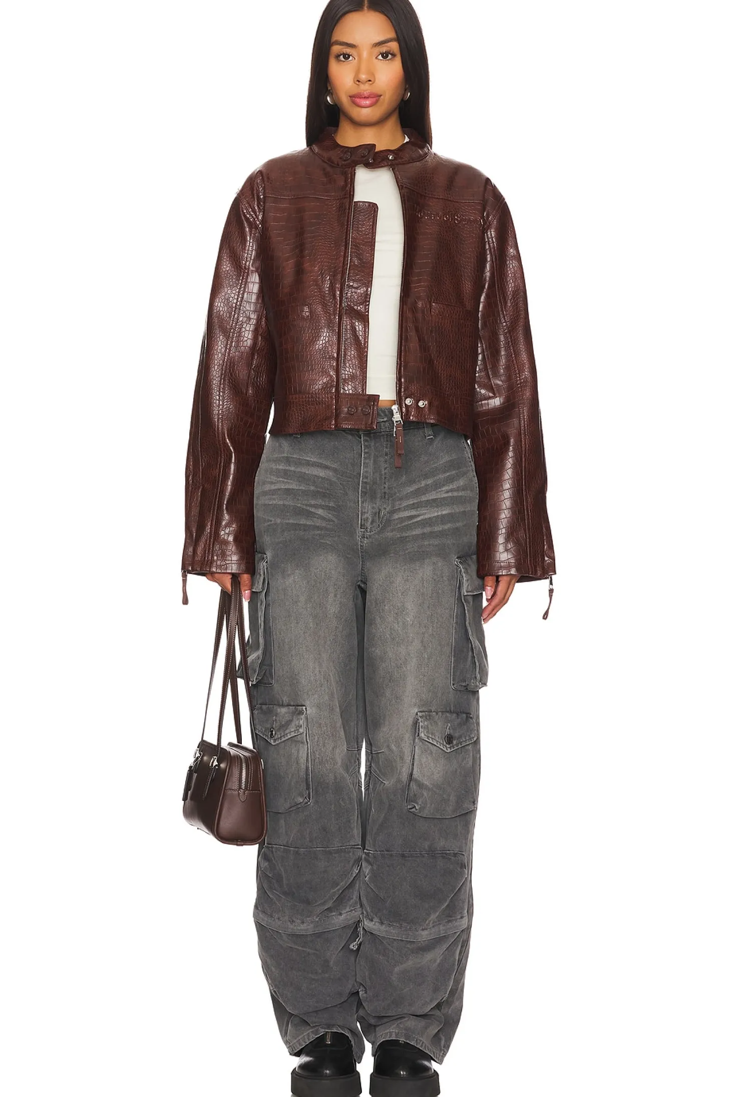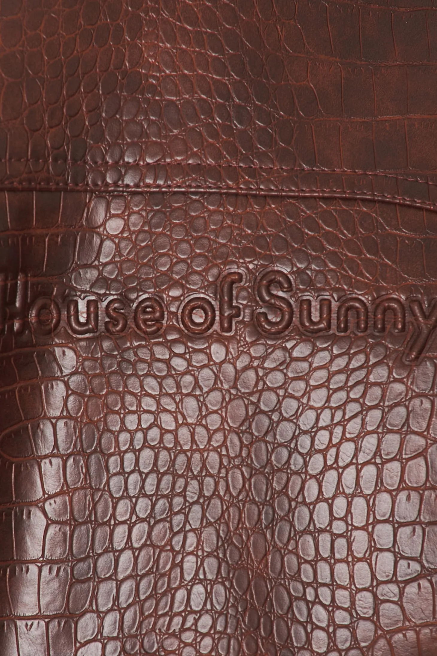 Self: 100% polyurethane Lining: 80% polyester 20% cotton.Made in China.Spot clean.Front zip closure.Croc embossed faux leather fabric