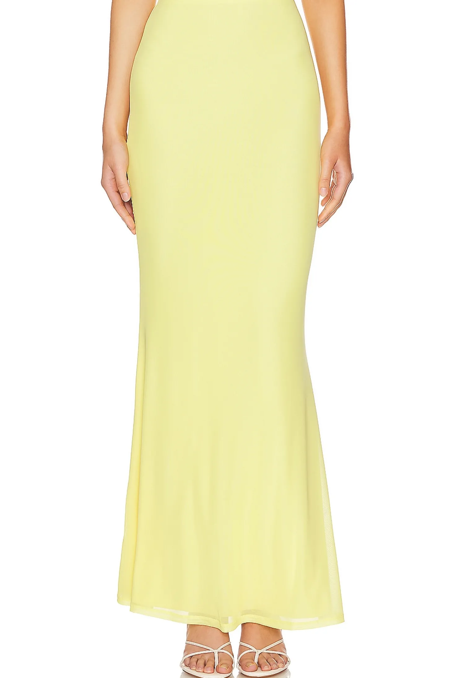 95% polyester 5% spandex.Made in China.Hand wash.Fully lined.Elastic waistband.Mesh jersey fabric.Item not sold as a set.Skirt measures approx 42" in length.AFRM's Tegan Skirt features a high waist fit and is fully lined for coverage. This style is a part of a set with the Thom Top.