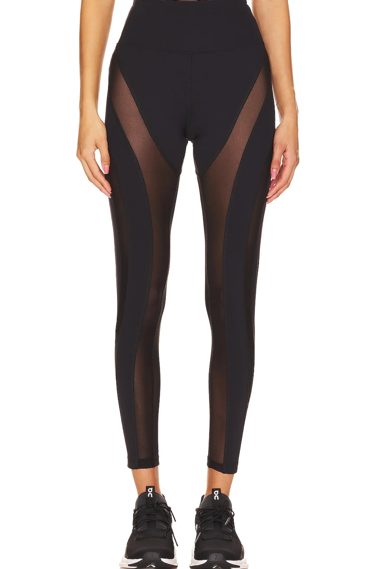 Self: 84% nylon 16% spandex Contrast Fabric: 95% polyester 5% spandex.Made in China.Machine wash.Pull-on styling with wide stretch waistband.Spandex jersey fabric with sheer paneling throughout.Item not sold as a set