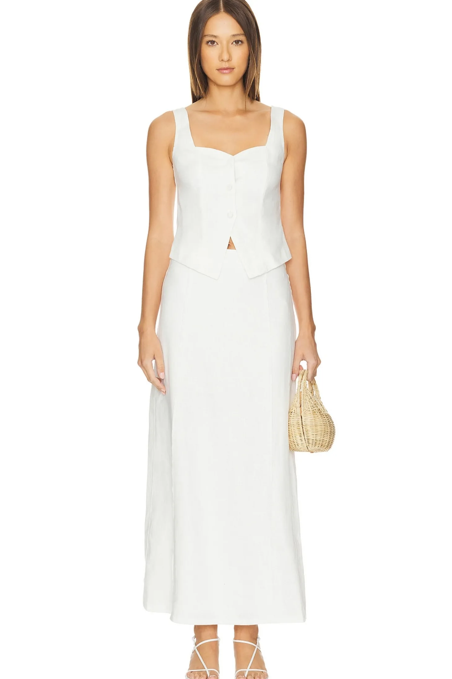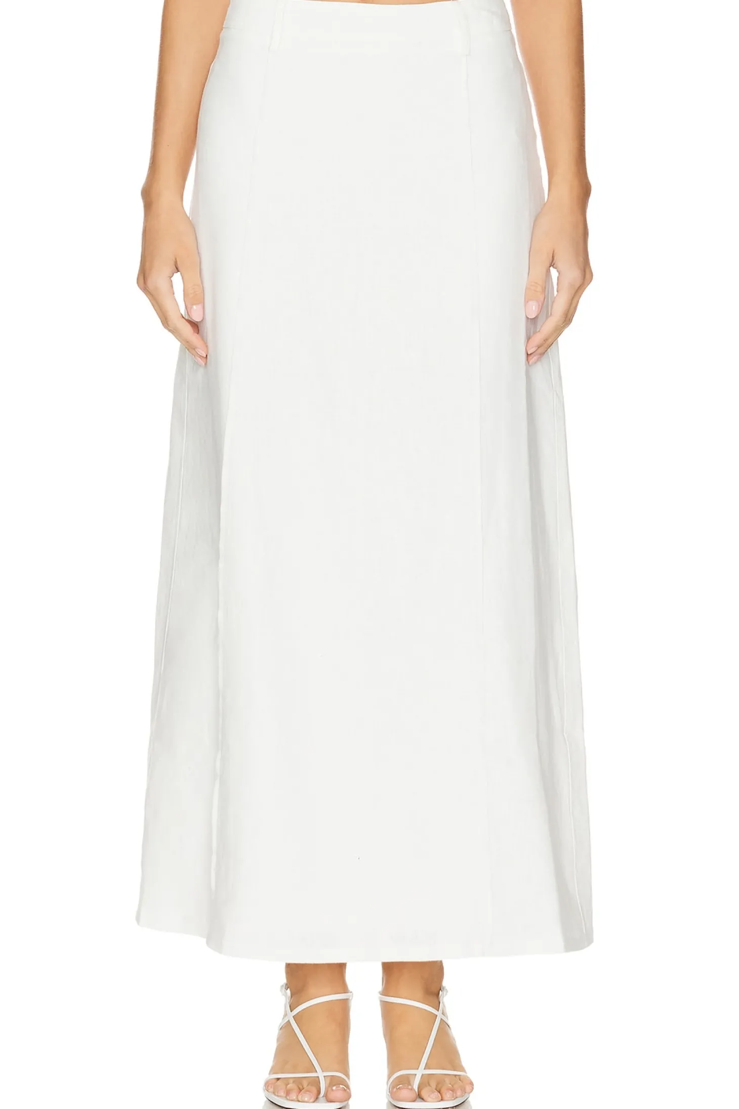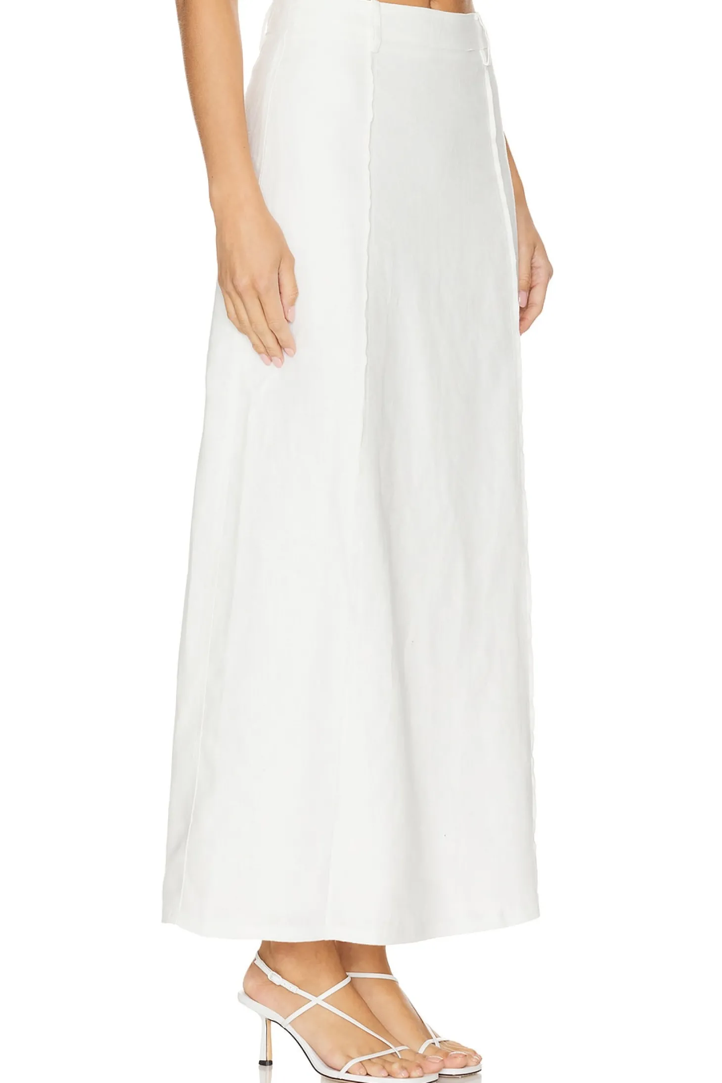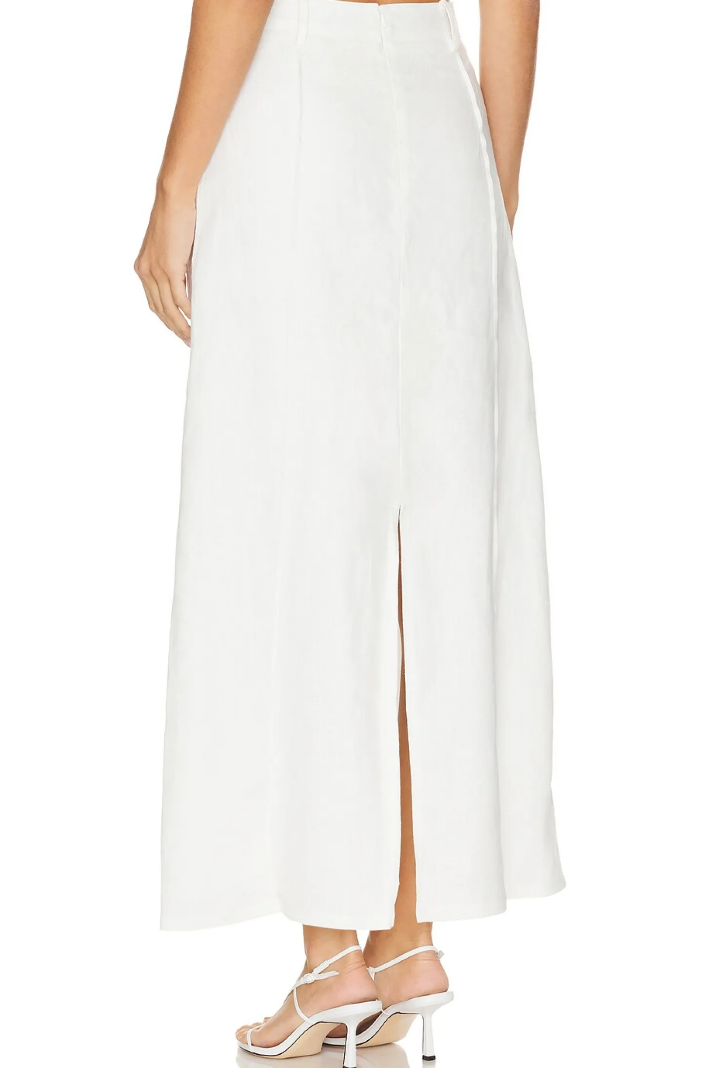 Self: 100% linen Lining: 100% rayon.Made in China.Hand wash.Fully lined.Hidden back zipper closure.Linen fabric with back vent.Item not sold as set.Waist to shortest hem measures approx 21" and to longest hem approx 38" in length