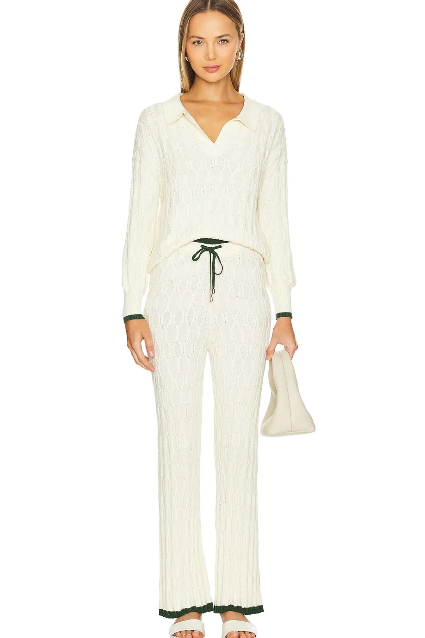 Knit blend.Imported.Hand wash recommended.Drawstring closure.Ribbed trim.Lightweight fabric.16" at the knee and 16" at the leg opening