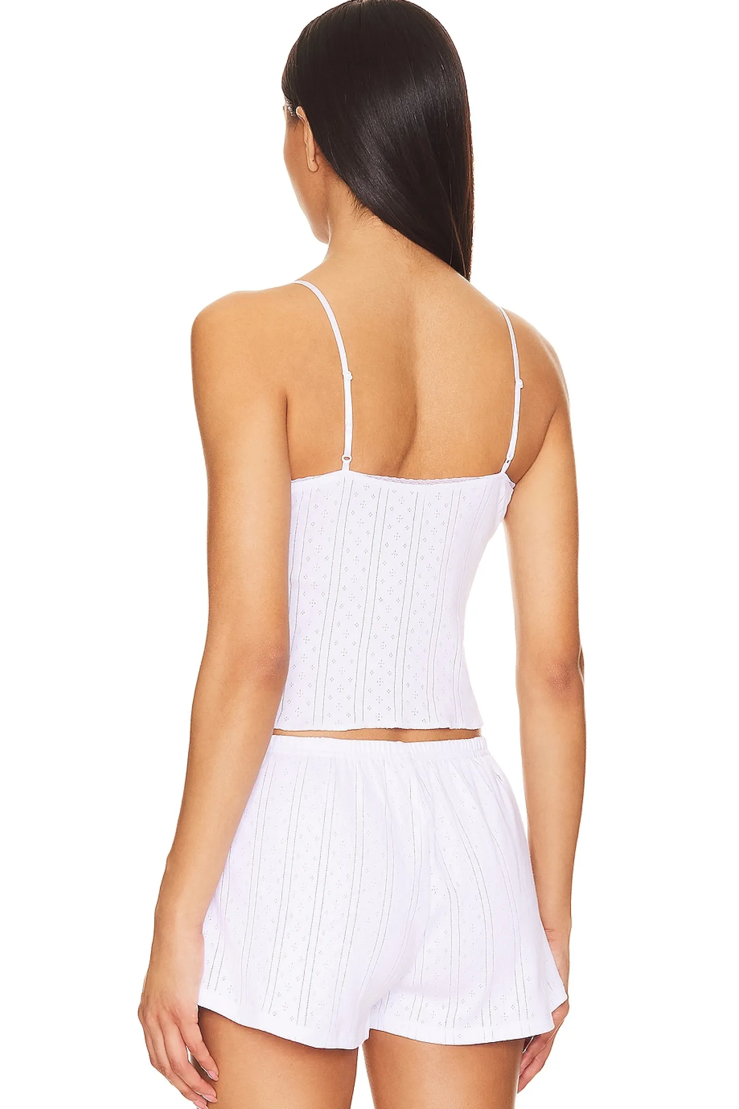 100% GOTS Certified Organic Cotton.Imported.Hand wash recommended.Petit bows at shoulder straps.Adjustable shoulder straps.Lightweight pointelle knit fabric with lace trims.Item not sold as a set