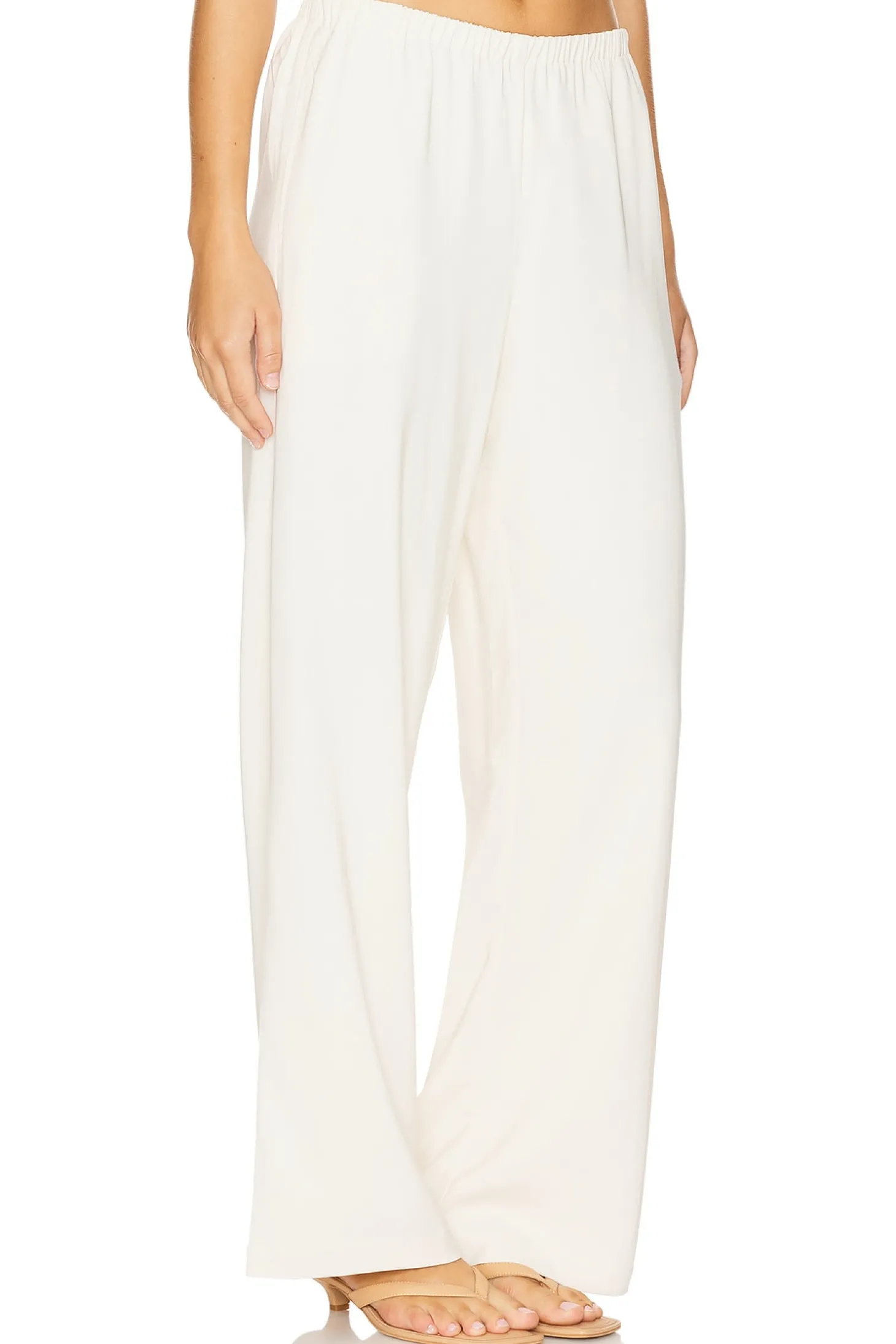 Self: 97% viscose 3% spandex Lining: 100% cotton.Made in China.Dry clean only.Pull-on styling with elastic waistband.Side slit pockets.Crepe fabric.22" at the knee and 22" at the leg opening