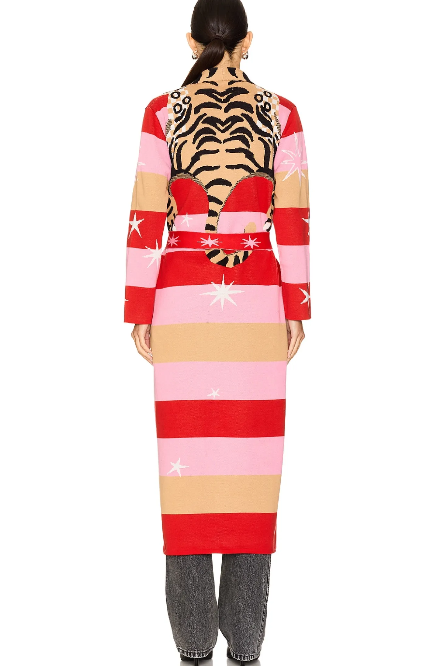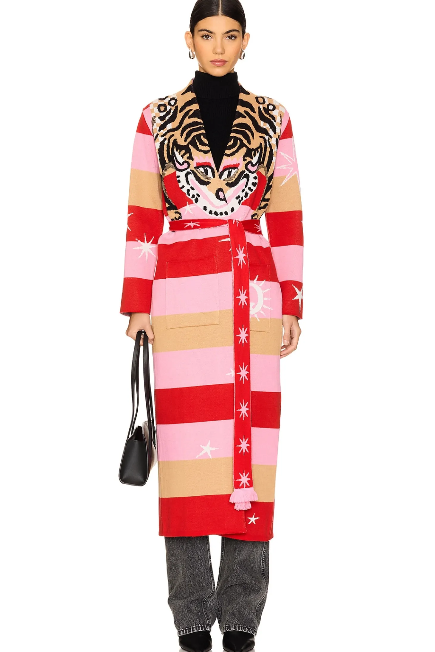 100% cotton.Made in Bulgaria.Dry clean only.Open style with optional waist tie.Front slip pockets.Midweight knit fabric