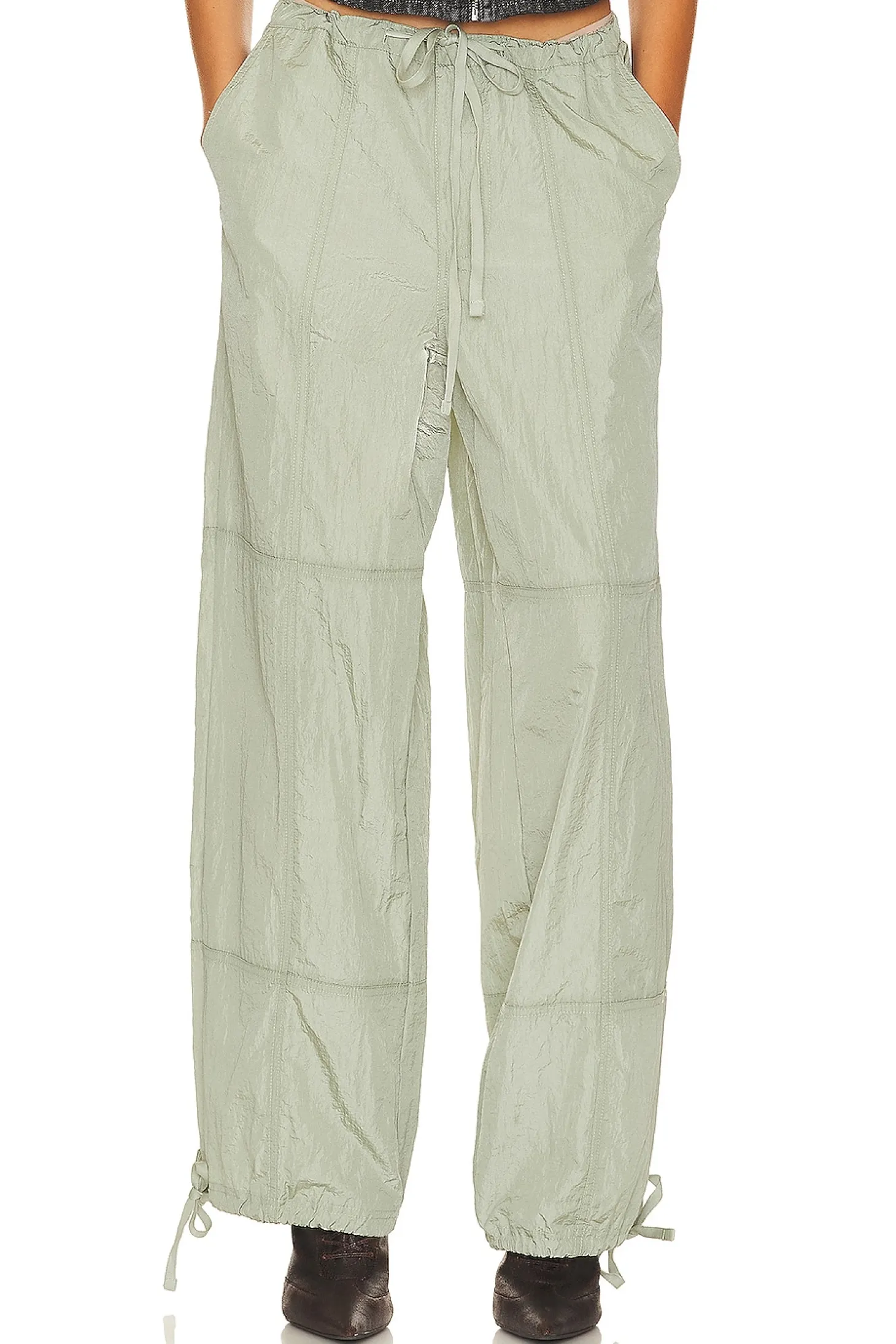 Level up your street style with the superdown Tina Pant in Sage. Zip fly and an elastic drawstring waistband and hem for a trendy look. The crinkle sateen fabric adds flair to the low-rise, cargo-style pants. Elevate your fashion game effortlessly..100% nylon.Made in China.Hand wash.Zip fly with button closure.Elastic drawstring waistband and hem.Crinkle sateen fabric.22" at the knee narrows to 20" at the leg opening