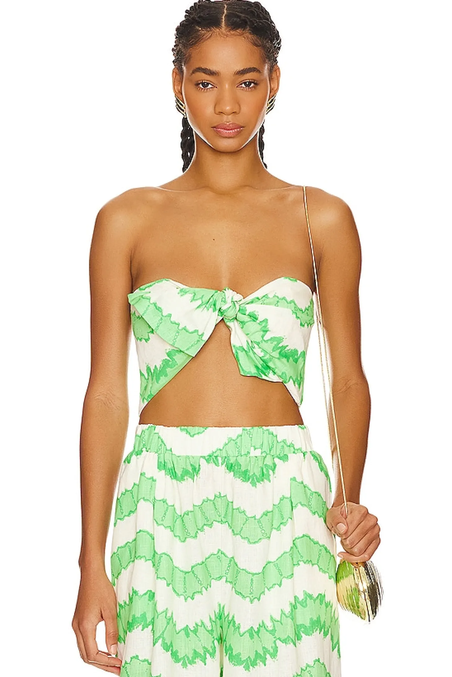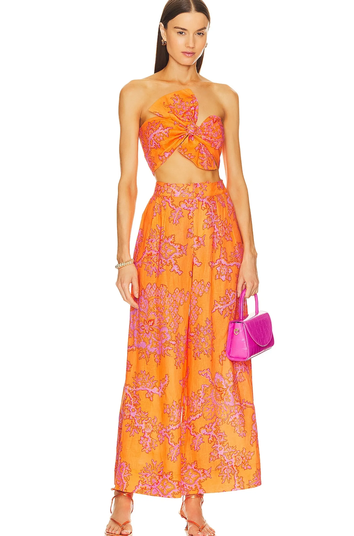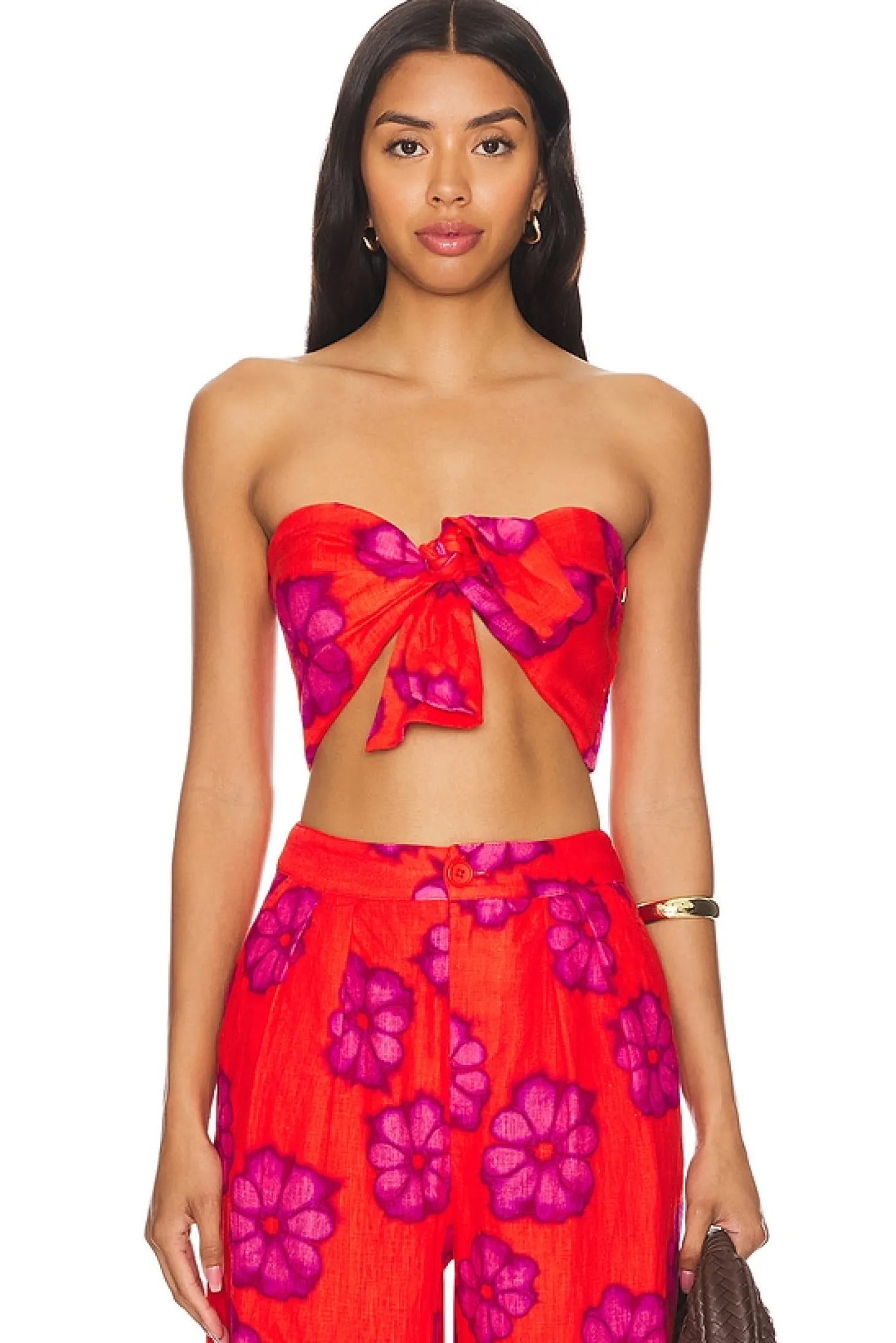 Self: 100% linen Lining: 100% cotton.Made in China.Machine wash.Hidden side zipper closure.Front bow detail.Lightweight linen fabric with smocked back.Item not sold as set