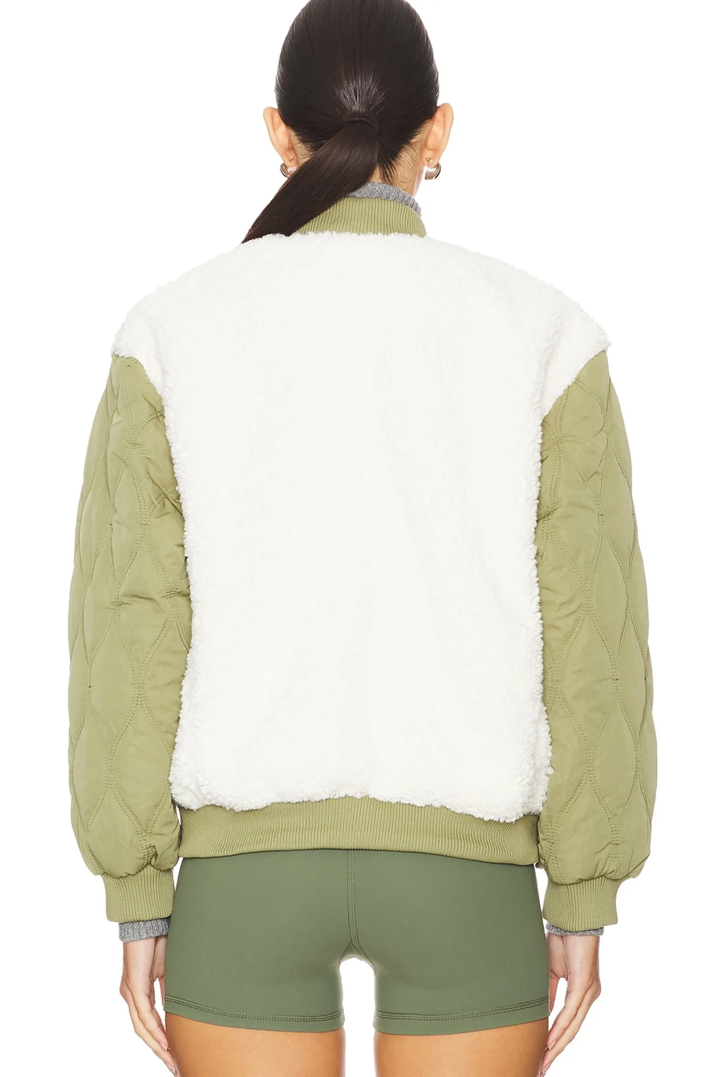 Self: 100% polyester Lining: 97% polyester 3% cotton.Made in China.Dry clean only.Hidden front zipper closure.Side flap pockets with button snap closure.Twill fabric at sleeves.Faux fur at front and back