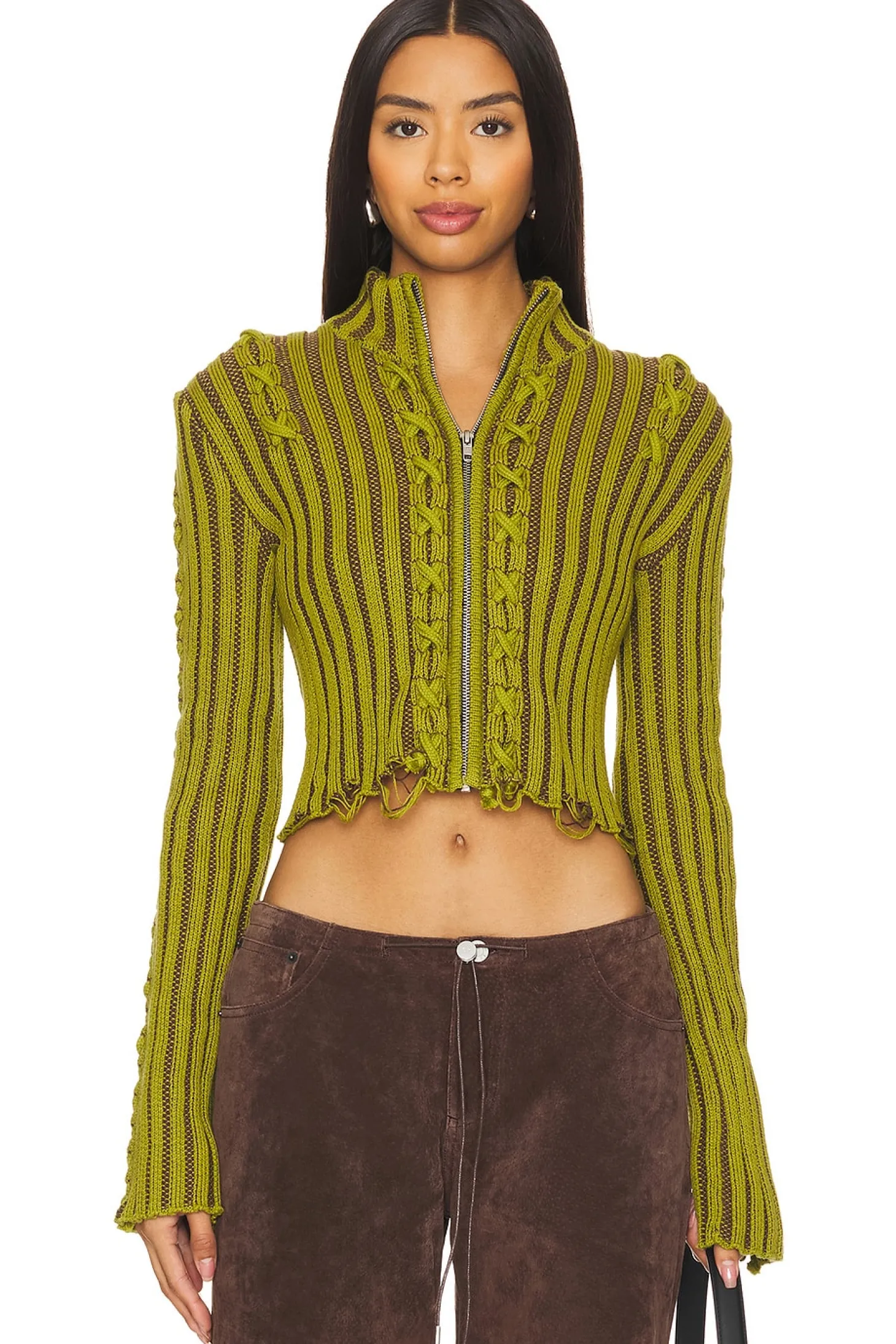 100% organic cotton.Made in Ukraine.Machine wash cold.Front zipper closure.Mock-neck design.Deconstructed hem