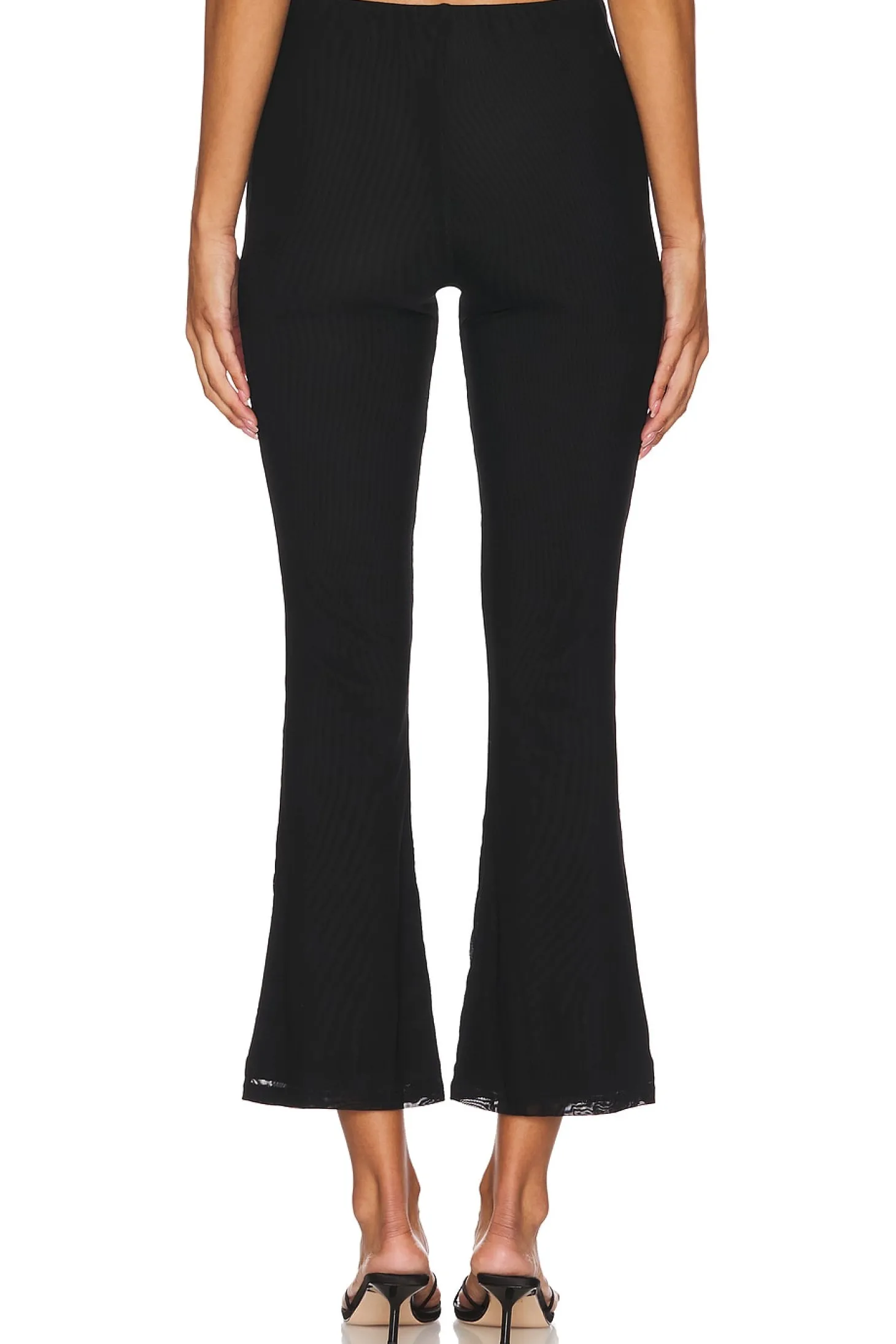 Self: 90% nylon 10% elastane Lining: 95% polyester 5% elastane.Made in China.Dry clean only.Pull-on styling with elastic waistband.Lightweight mesh fabric.Item not sold as set.13" at the knee breaks to 17" at the leg opening