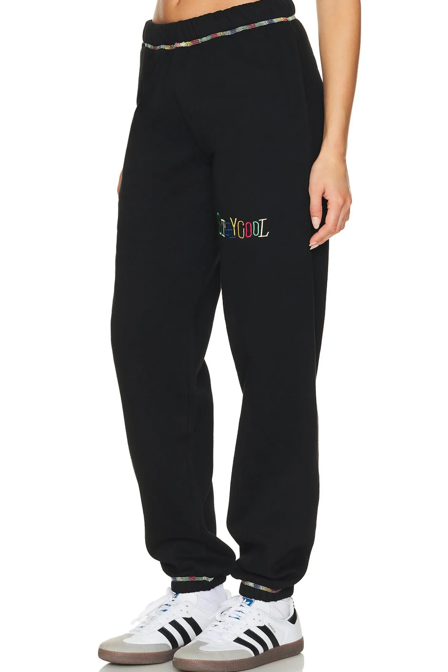 50% cotton 50% polyester.Made in China.Machine wash.Pull-on styling with elastic waistband.Side seam pockets.Fleece lining.Item not sold as a set.18" at the knee narrows to 10" at the leg opening