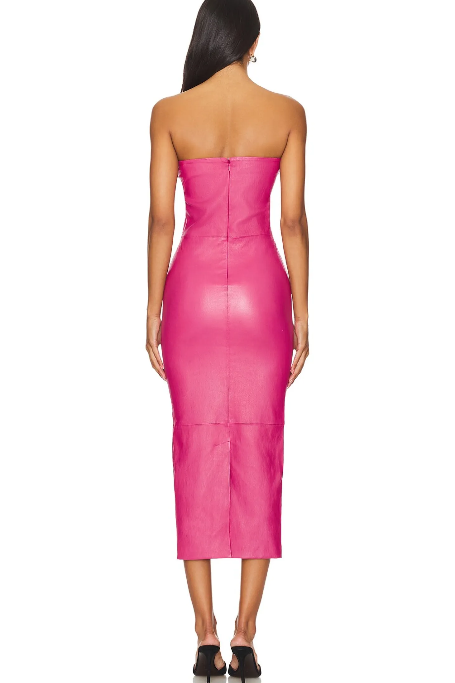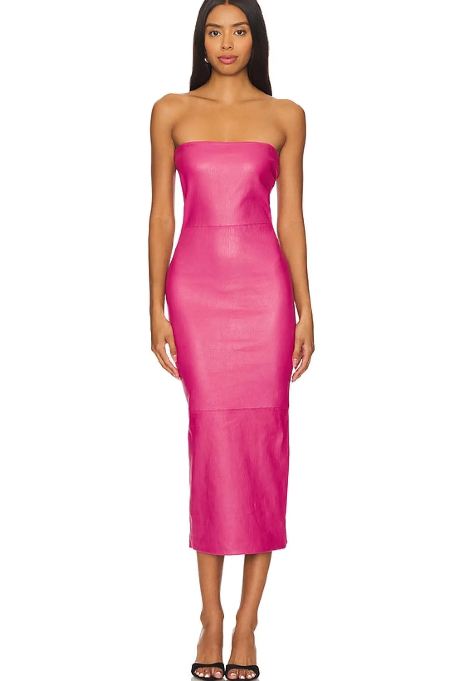 100% lamb leather.Made in India.Leather clean only.Unlined.Hidden back zipper closure.Back vent.Neckline to hem measures approx 42" in length