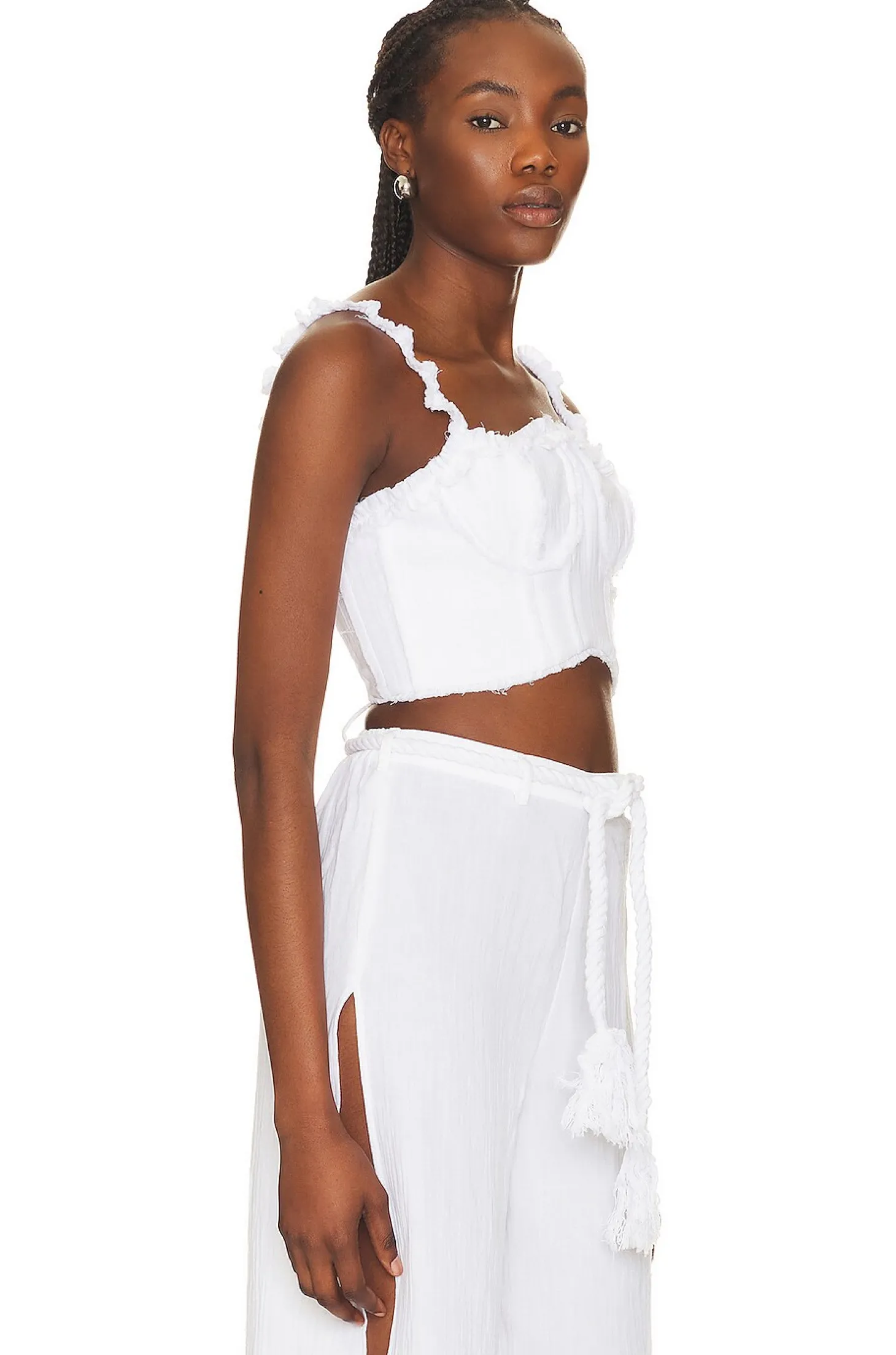 100% cotton.Made in China.Hand wash.Back lace-up tie closure.Boned bodice.Unpadded underwire bust.Ruffle trim
