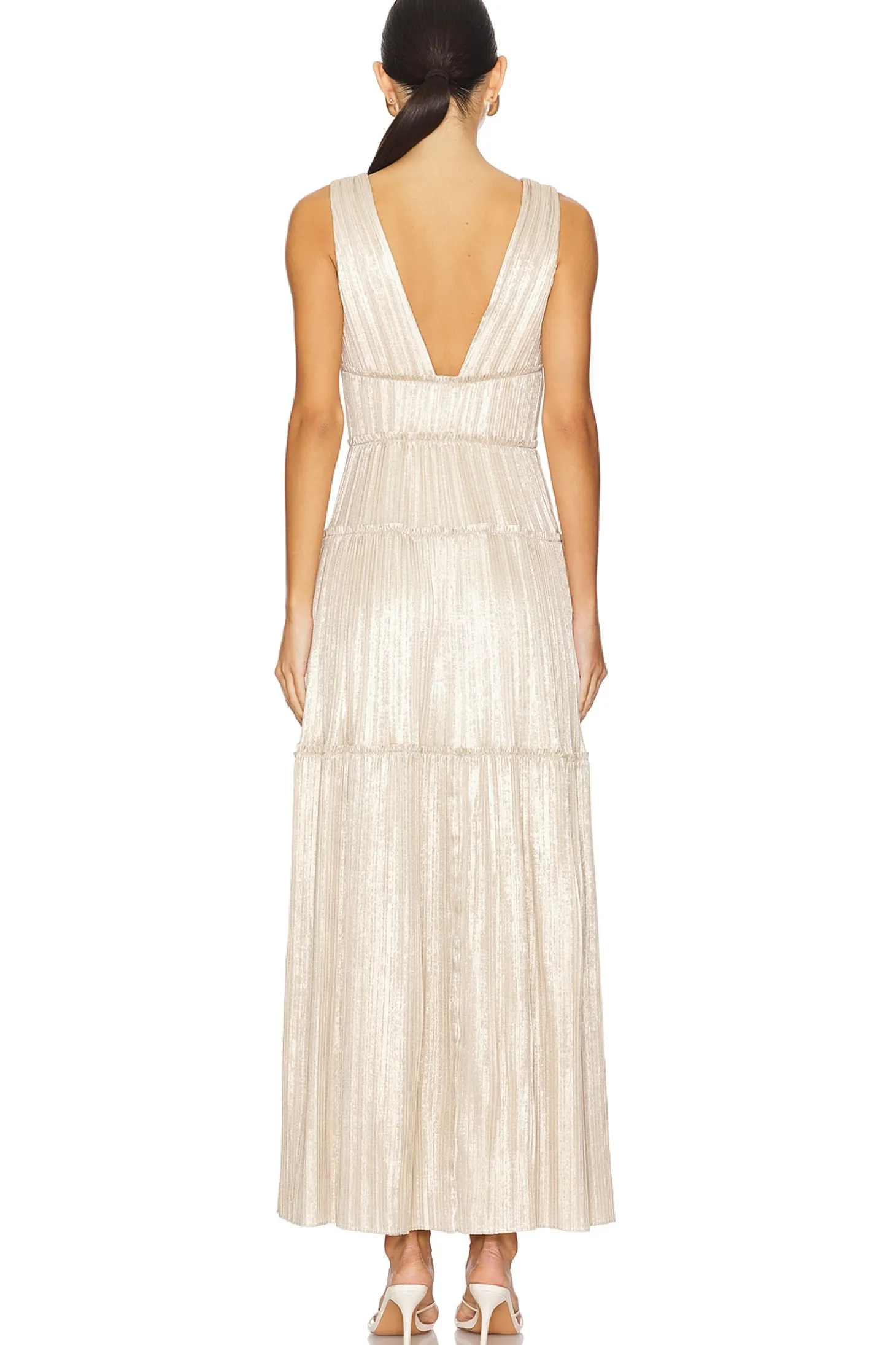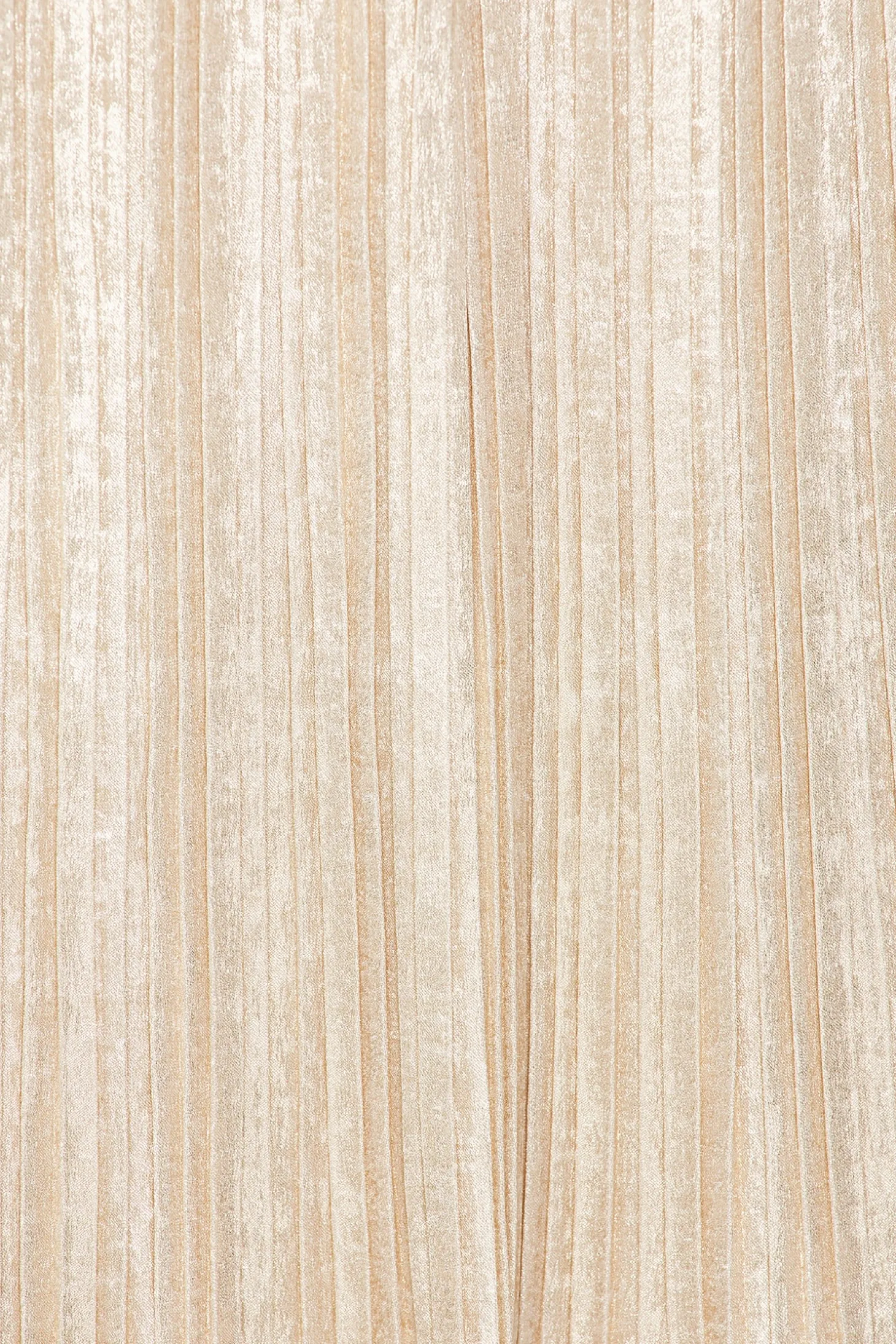 Self & Lining: 100% polyester.Made in China.Machine wash.Fully lined.Hidden side zip closure.Side seam pockets Tiered pleated skirt.Heavyweight glitter fabric