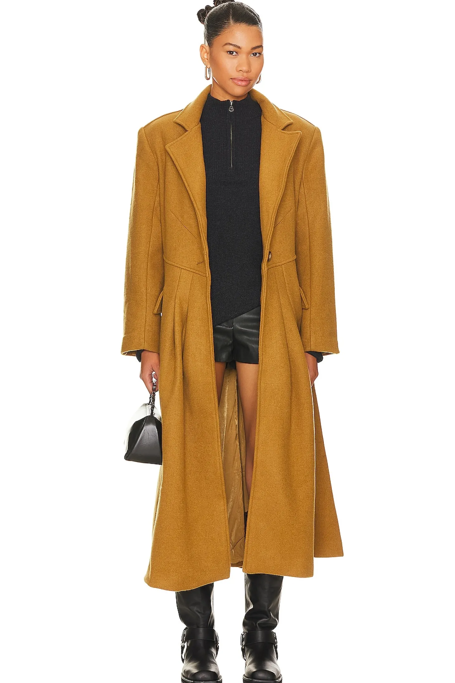 Stay warm and stylish with Free People's Victoria Coat in timeless tan. Crafted from heavyweight melton fabric, this coat is designed to keep you cozy and chic during the colder months..Self: 43% polyester 43% wool 6% nylon 8% other fibers Lining: 55% polyester 45% viscose.Made in Cambodia.Dry clean only.Singular front button closure.Padded shoulders.Side flap pockets.Heavyweight melton fabric