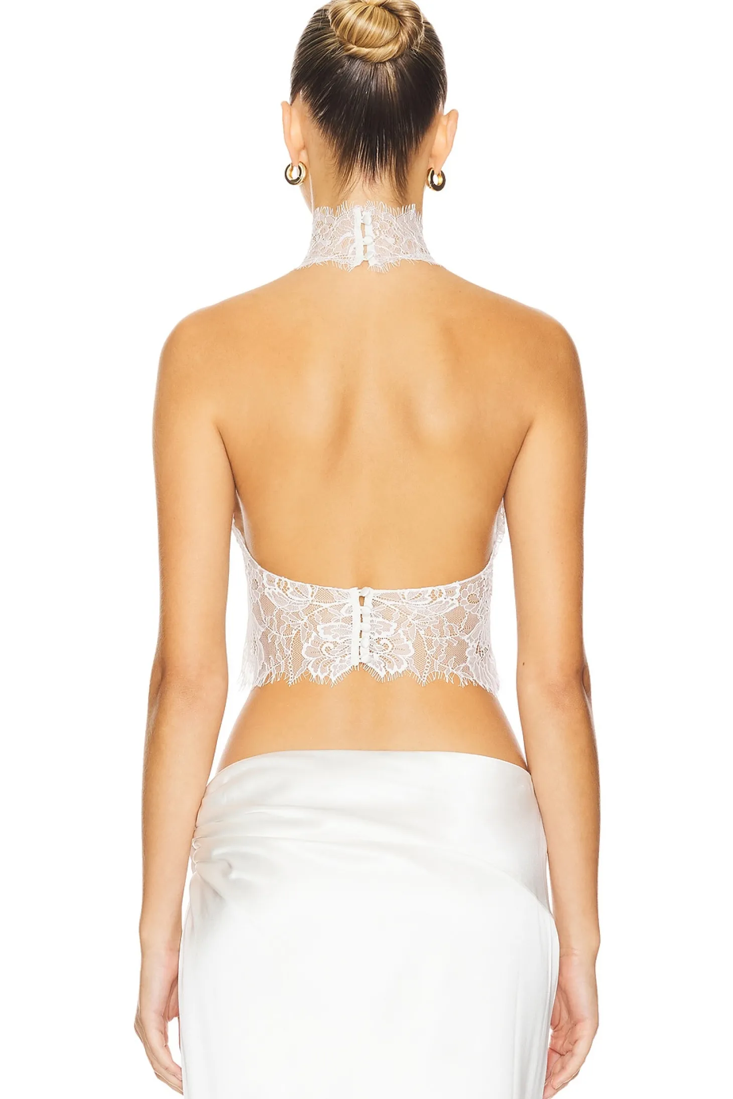 Self 1: 100% nylon Self 2: 95% silk 5% spandex.Made in China.Dry clean.Loop button closures at neckline and back.Lightweight sheer lace fabric.Item not sold as a set.Garment is intentionally sheer, undergarments will show through. Please note undergarment not included