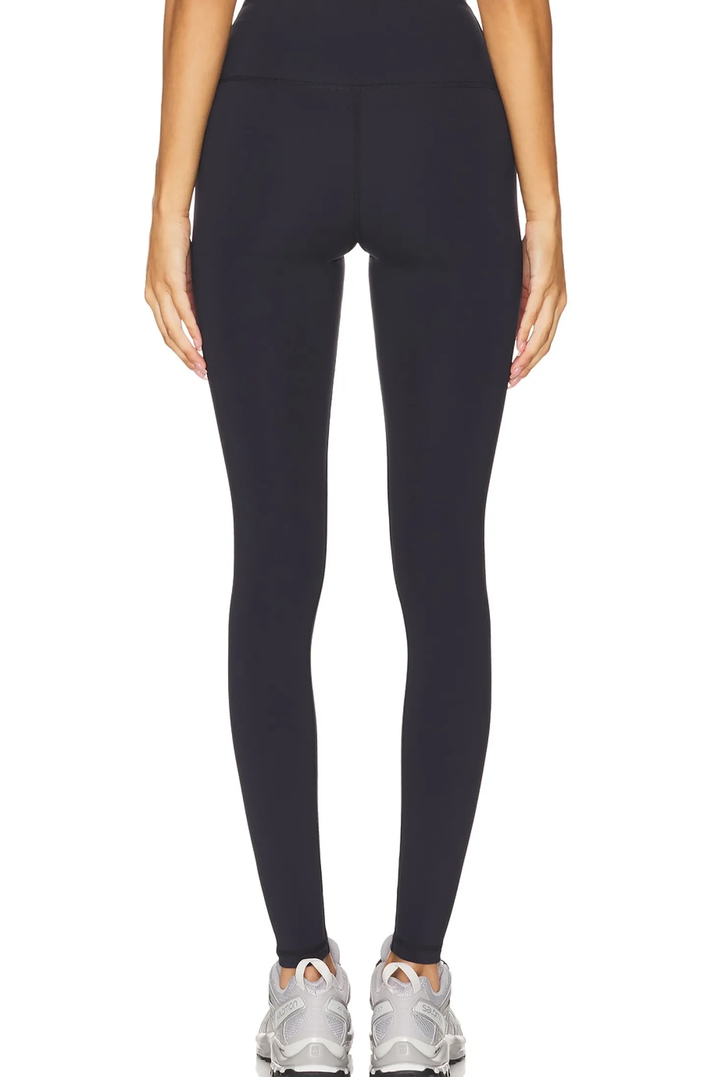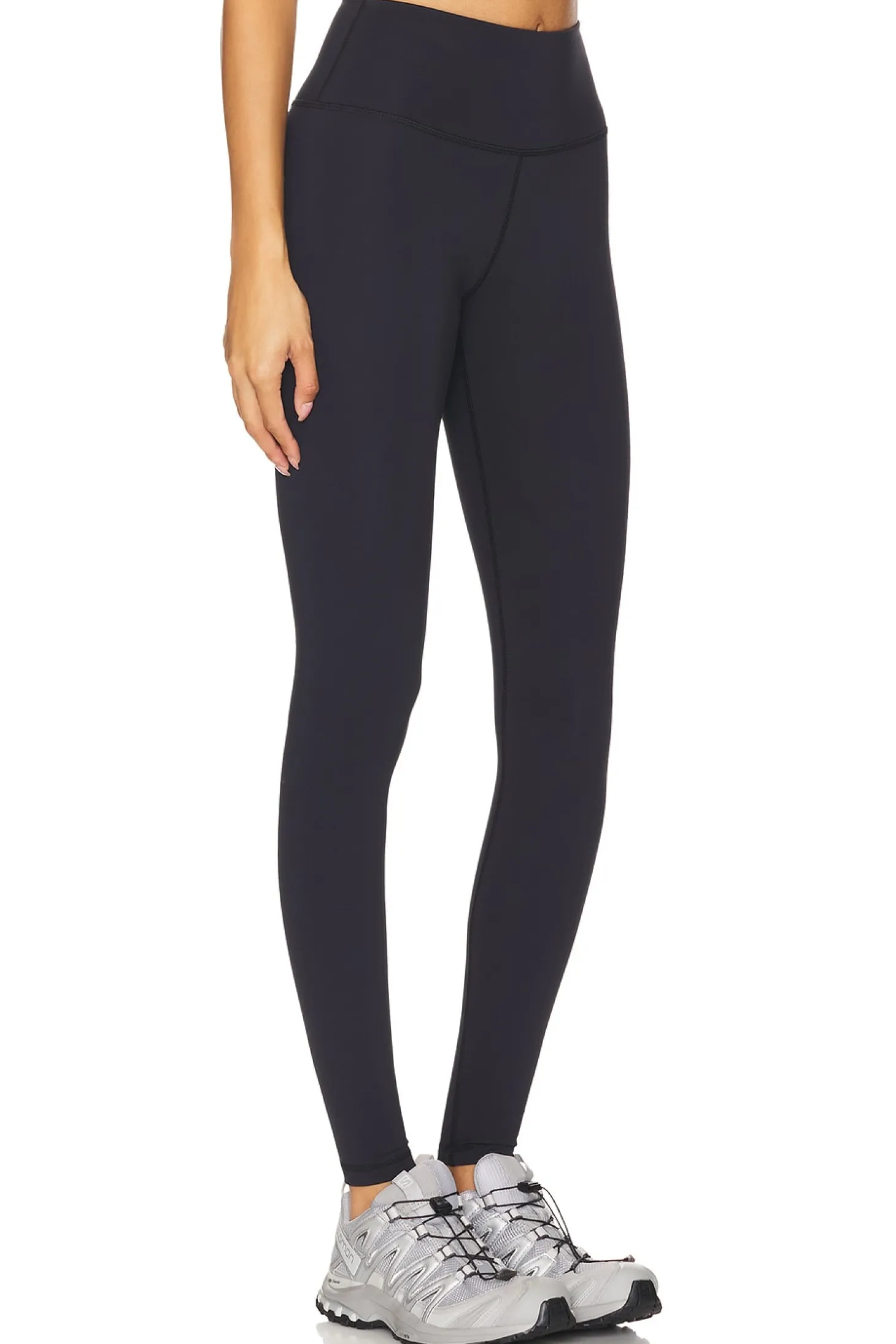 77% recycled polyester 23% elastane.Made in China.Machine wash.Elasticized waistband.Stretch fit fabric.Brushed interior for enhanced warmth Designed in mind for cold weather workouts, layering under winter wear, and apres comfort.Medium compression with 4-Way stretch Moisture-wicking.10" at the knee narrows to 6" at the leg opening
