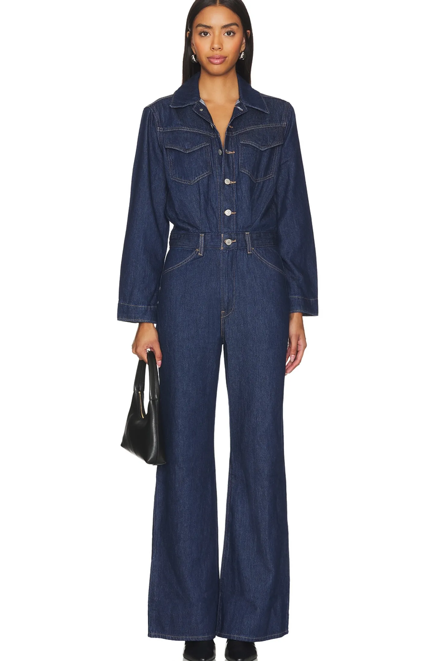 100% cotton.Made in Sri Lanka.Machine wash.Front button closure.Zip fly with button closure.6-pocket styling with breast button pockets.Rigid denim