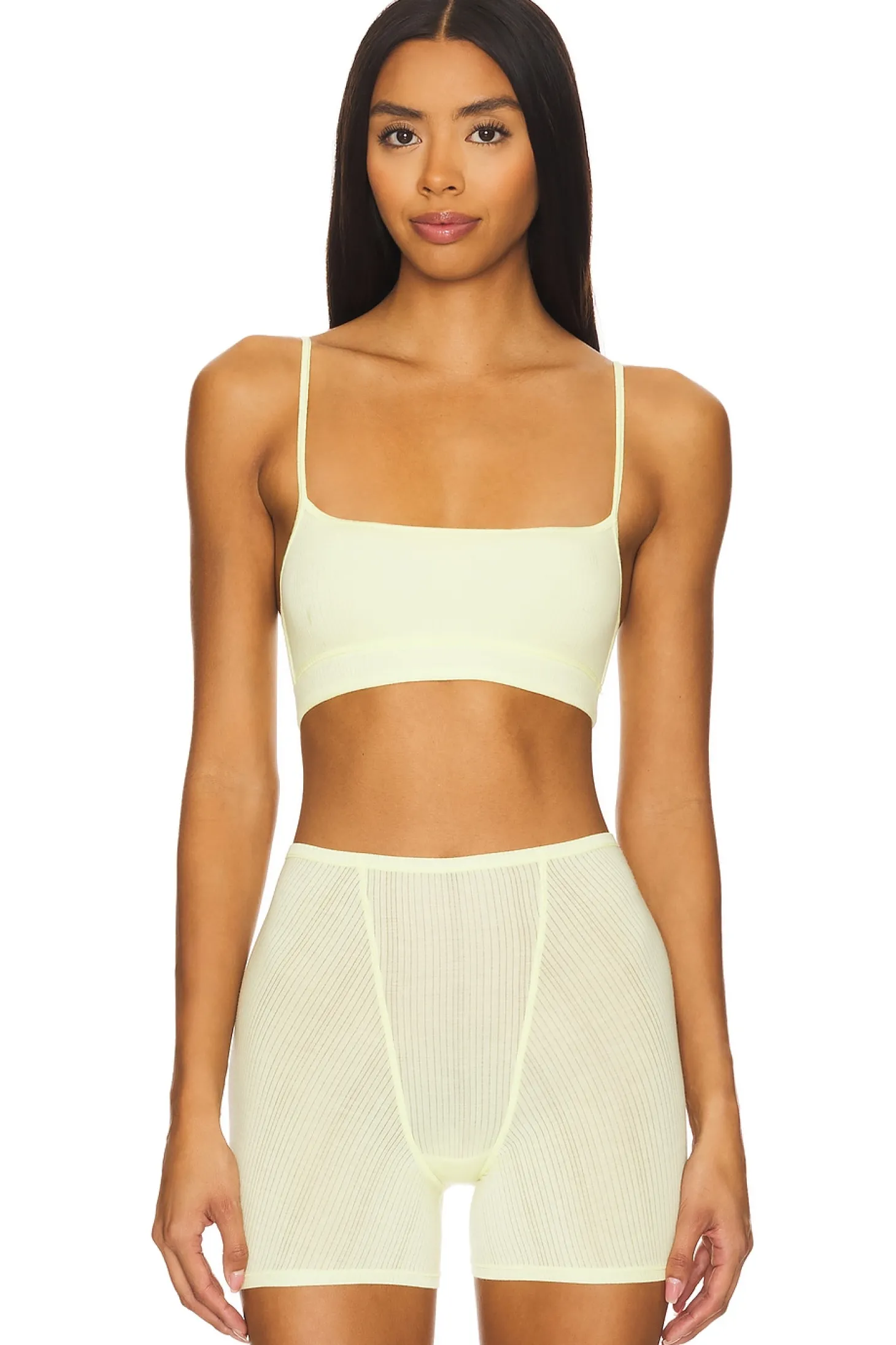 91% micromodal 9% lycra.Made in China.Machine wash.Unpadded unwired cups.Adjustable shoulder straps.Wispy soft stretch fabric.Drop-needle stitch creates a subtle, vertical stripe effect.Item not sold as a set