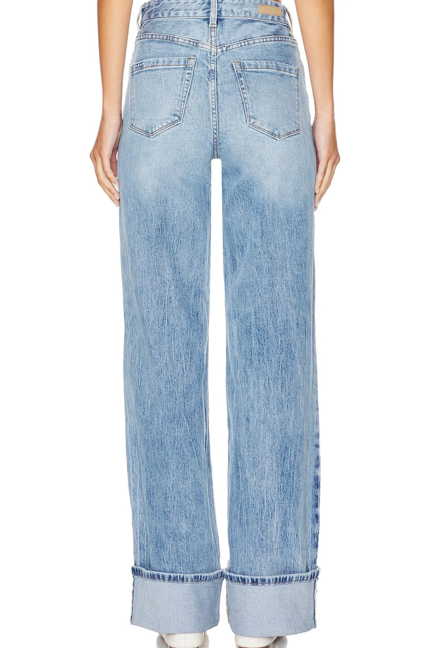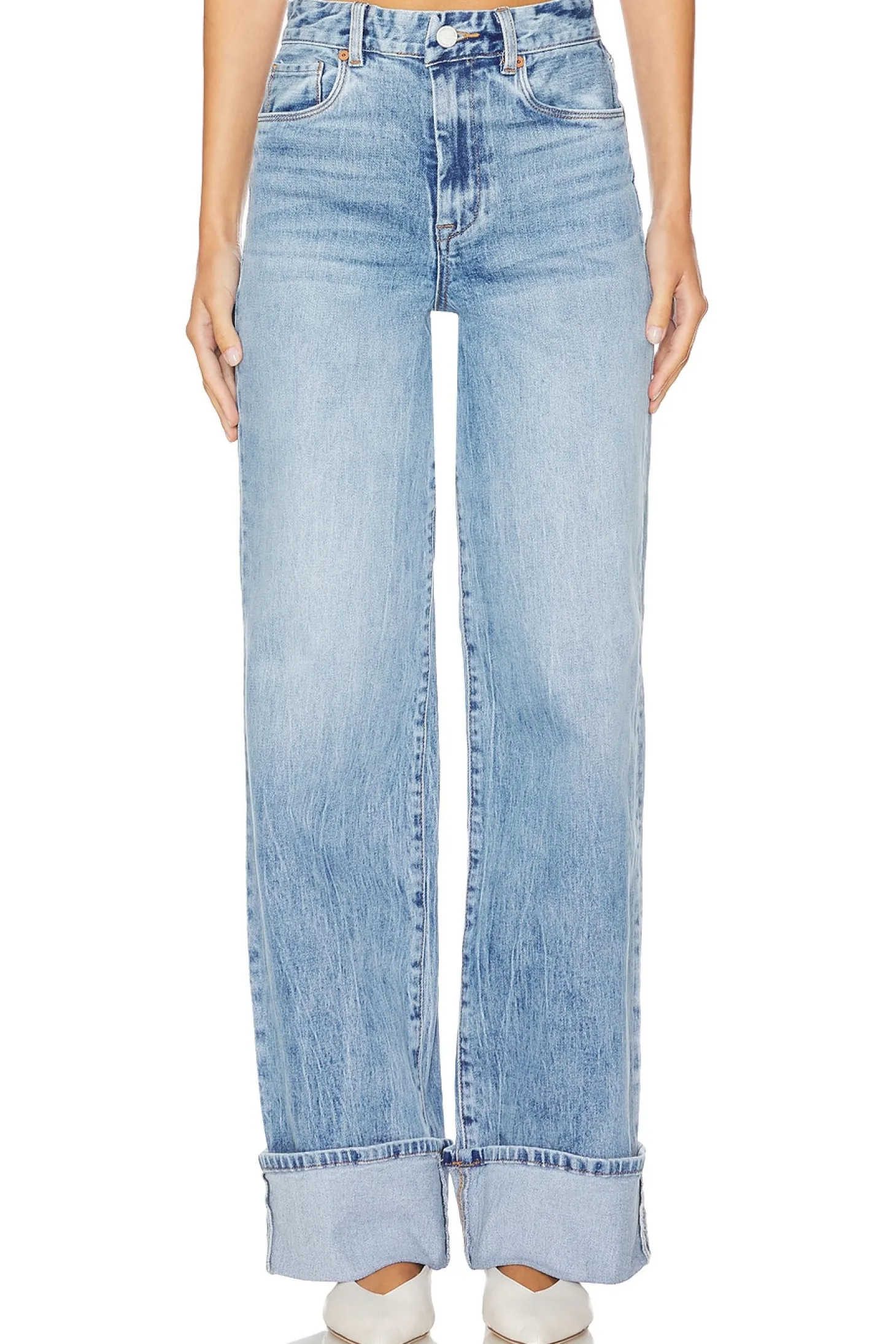 99% cotton 1% spandex.Made in China.Machine wash.Zip fly with button closure.5-pocket design.Light whiskering and fading detail.Folded cuffs.20" at the knee narrows to 19" at the leg opening